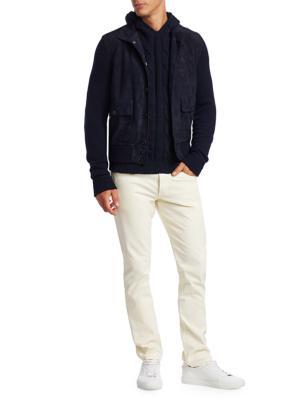 يجمع هذا الجاكيت المصنوع من الجلد المدبوغ في الأمام والكشمير في الخلف بين الحرفية الراقية والجمال الريفي.