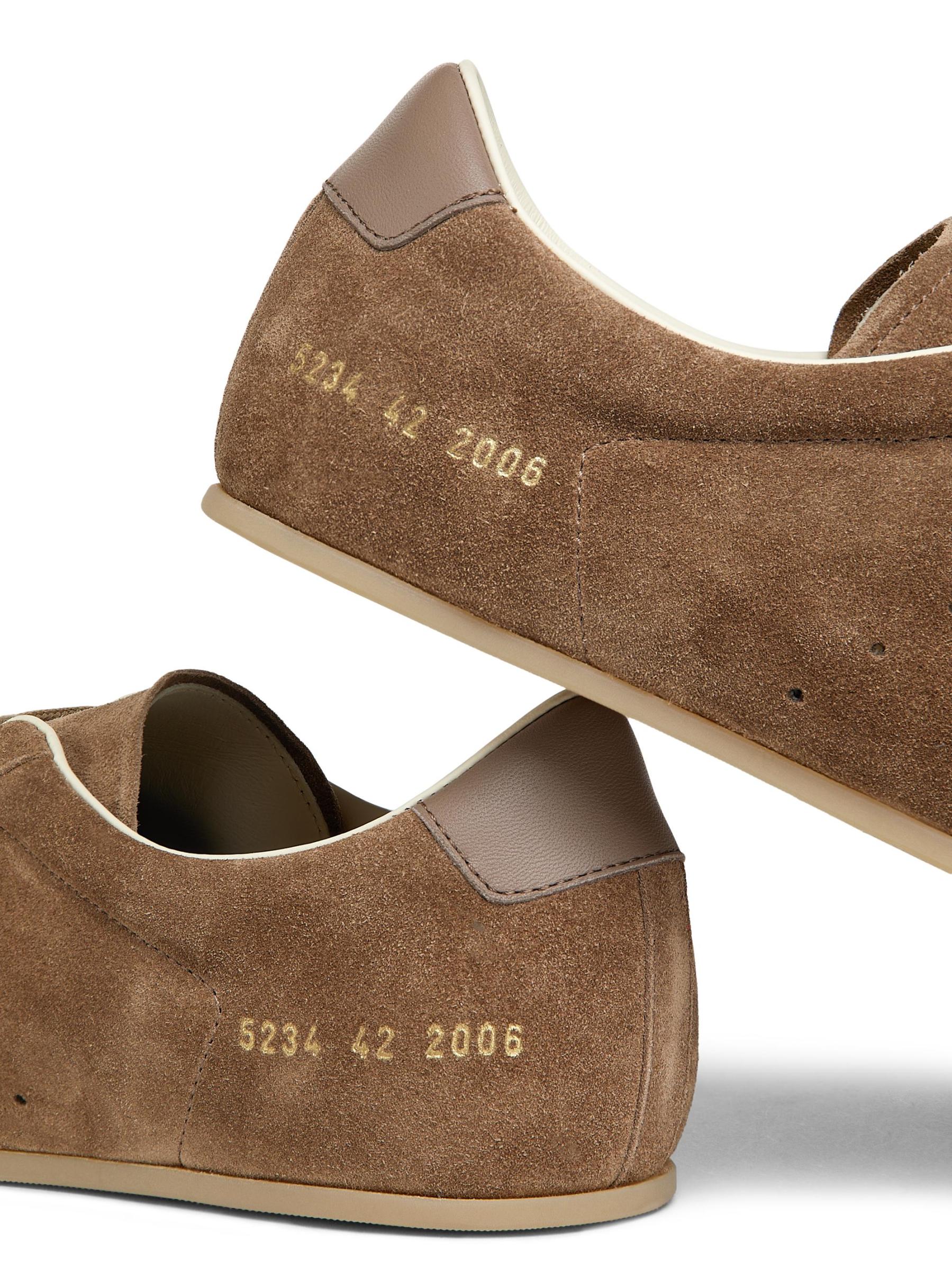 يتميز حذاء القيادة Common Projects هذا المصنوع من الجلد المدبوغ الفاخر بمظهر منخفض مع أربطة ملونة وبطانة جلدية متباينة. تزين أرقام العلامة التجارية العشرة ذات اللون الذهبي الكعب الخارجي لهذا الطراز.