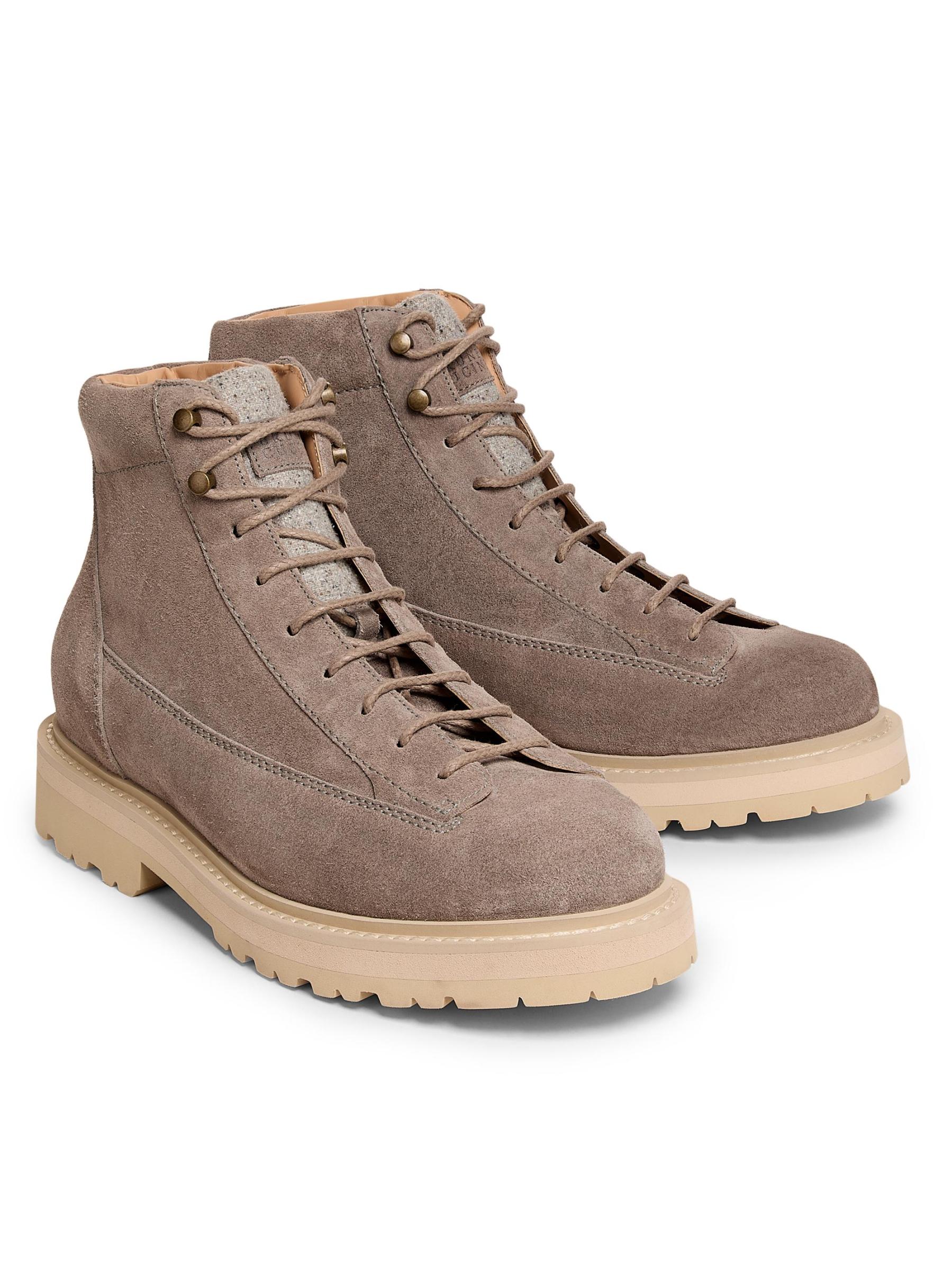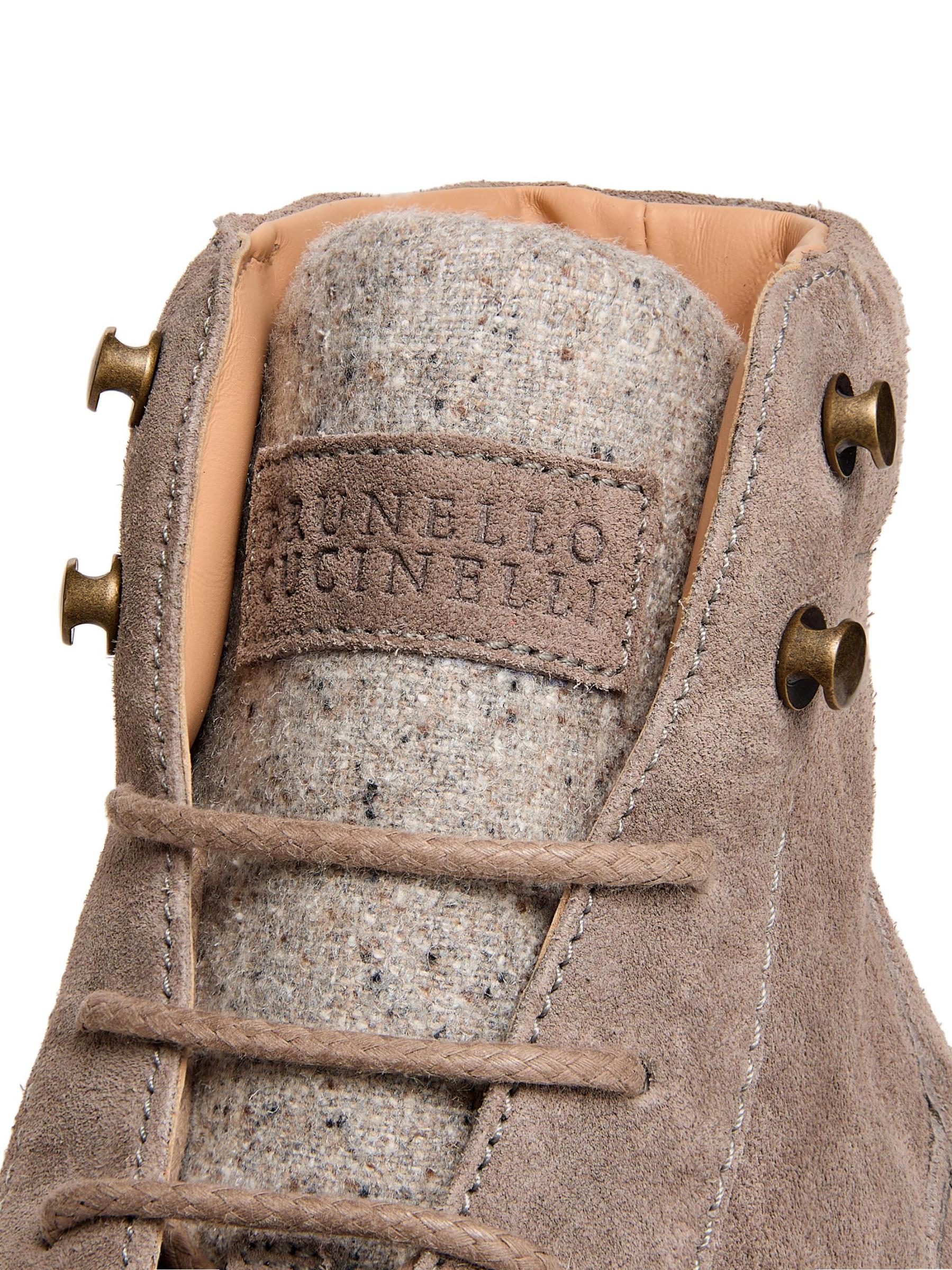 صُنعت أحذية Brunello Cucinelli للكاحل من الجلد المدبوغ، مما يُظهر الحرفية الإيطالية المميزة للعلامة التجارية. تم تصميم هذا الزوج بنعل كلاسيكي.