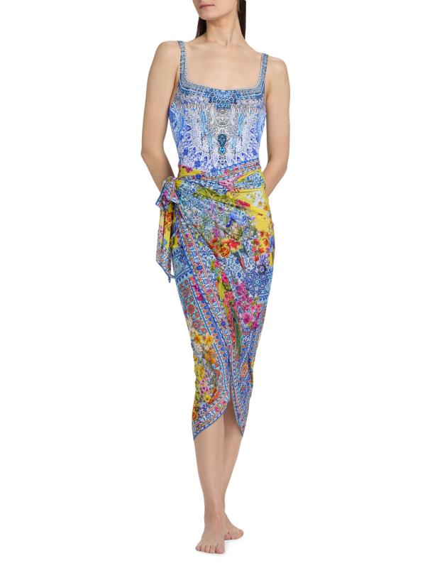 يتميز هذا السارونغ ذو العيينة من كاميلا بطبعة السلطان أحمد الصيفية بزخارف نباتية متعددة الألوان.إغلاق برباط ذاتي 78% نايلون/ 32% إيلاستين تنظيف جاف مستوردة