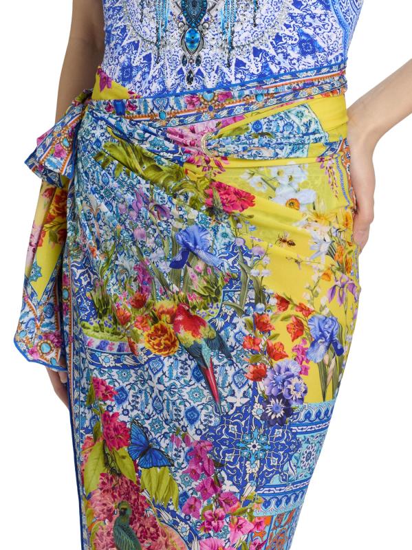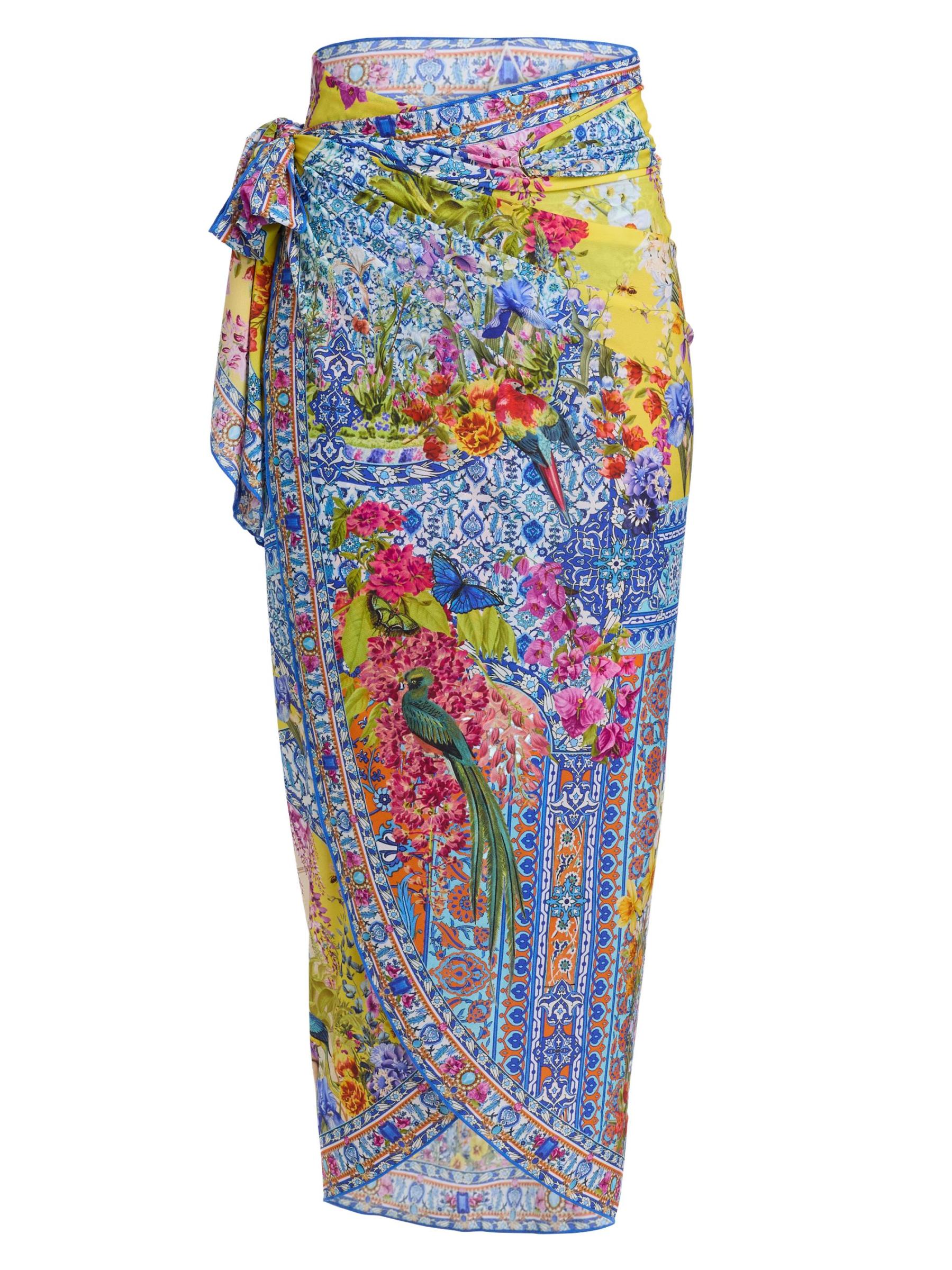 يتميز هذا السارونغ ذو العيينة من كاميلا بطبعة السلطان أحمد الصيفية بزخارف نباتية متعددة الألوان.
