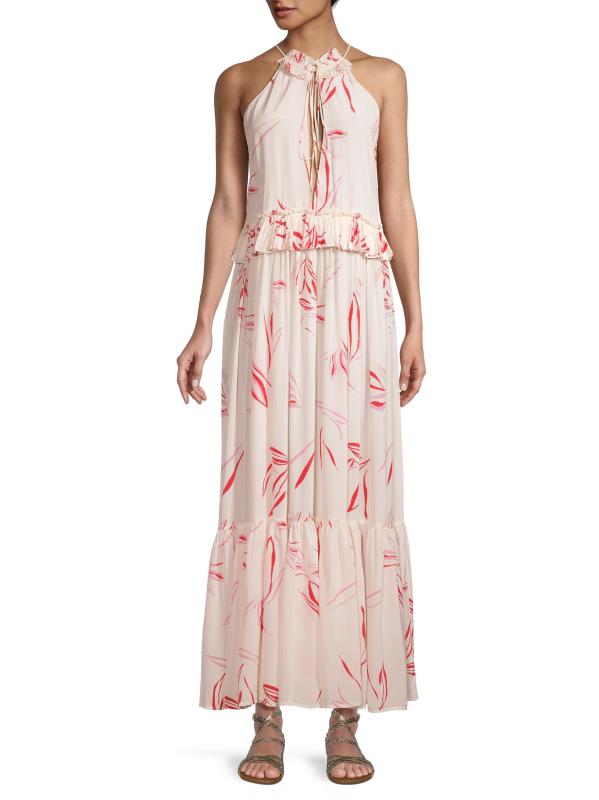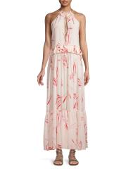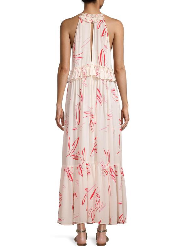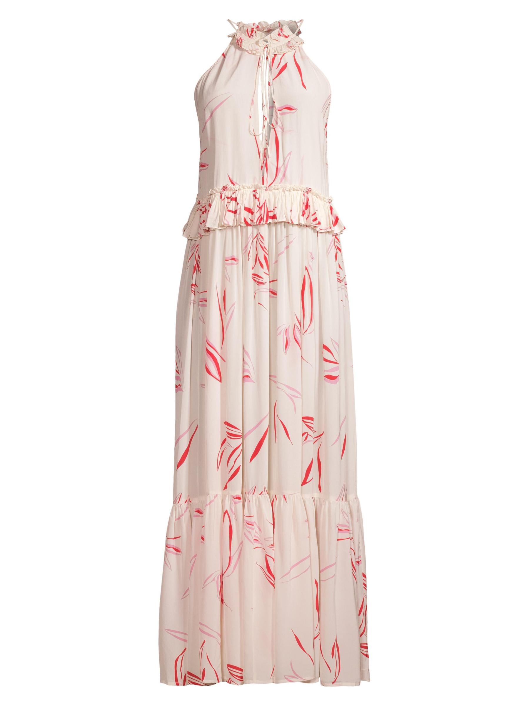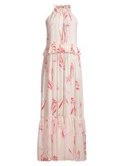 من مجموعة Summer Reverie. فستان أليجرا ماكسي بفتحة المفتاح من Evarae مصنوع من الكريب دي تشاين. يتميز هذا الطراز برقبة رسن وأكتاف مقصوصة وتقليم مكشكش.رقبة هالتيرنك بدون أكمام إغلاق برباط العنق فيسكوز 100% تنظيف جاف مستوردة