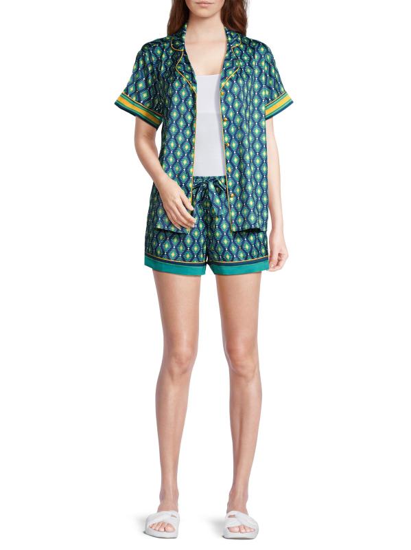 طقم بيجامة شورت مطبّع من صن سيت أوشن ديب