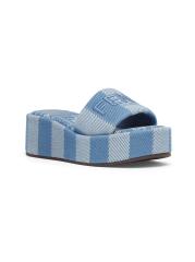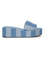 تم تزيين شرائح منصة Sunshine المخططة من Fendi بحروف شعار جريئة وتم وضعها فوق نعل منصة مريح مقاس 65 مم.