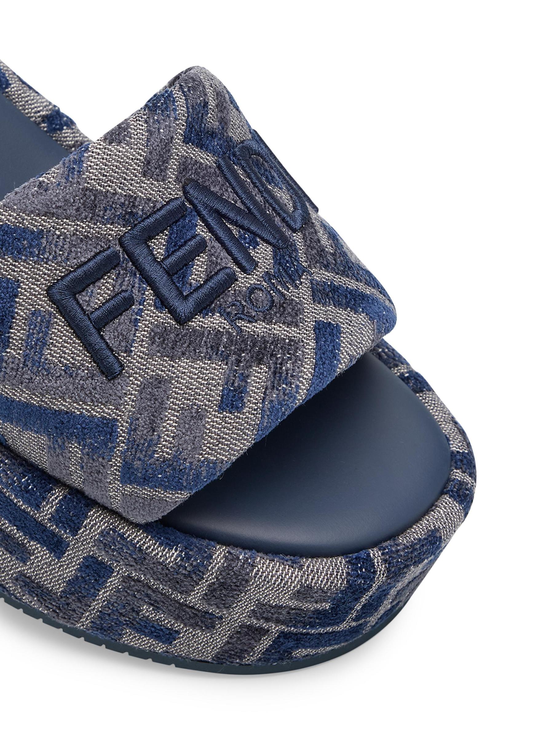 صندل Sunshine FF بلاتفورم من Fendi مصنوع من قماش الجاكار الشنيل مع شعار FF المميز للعلامة التجارية.إصبع مفتوح سهل الارتداء الجزء العلوي من النسيج بطانة جلدية نعل مطاطي صُنع في إيطاليا