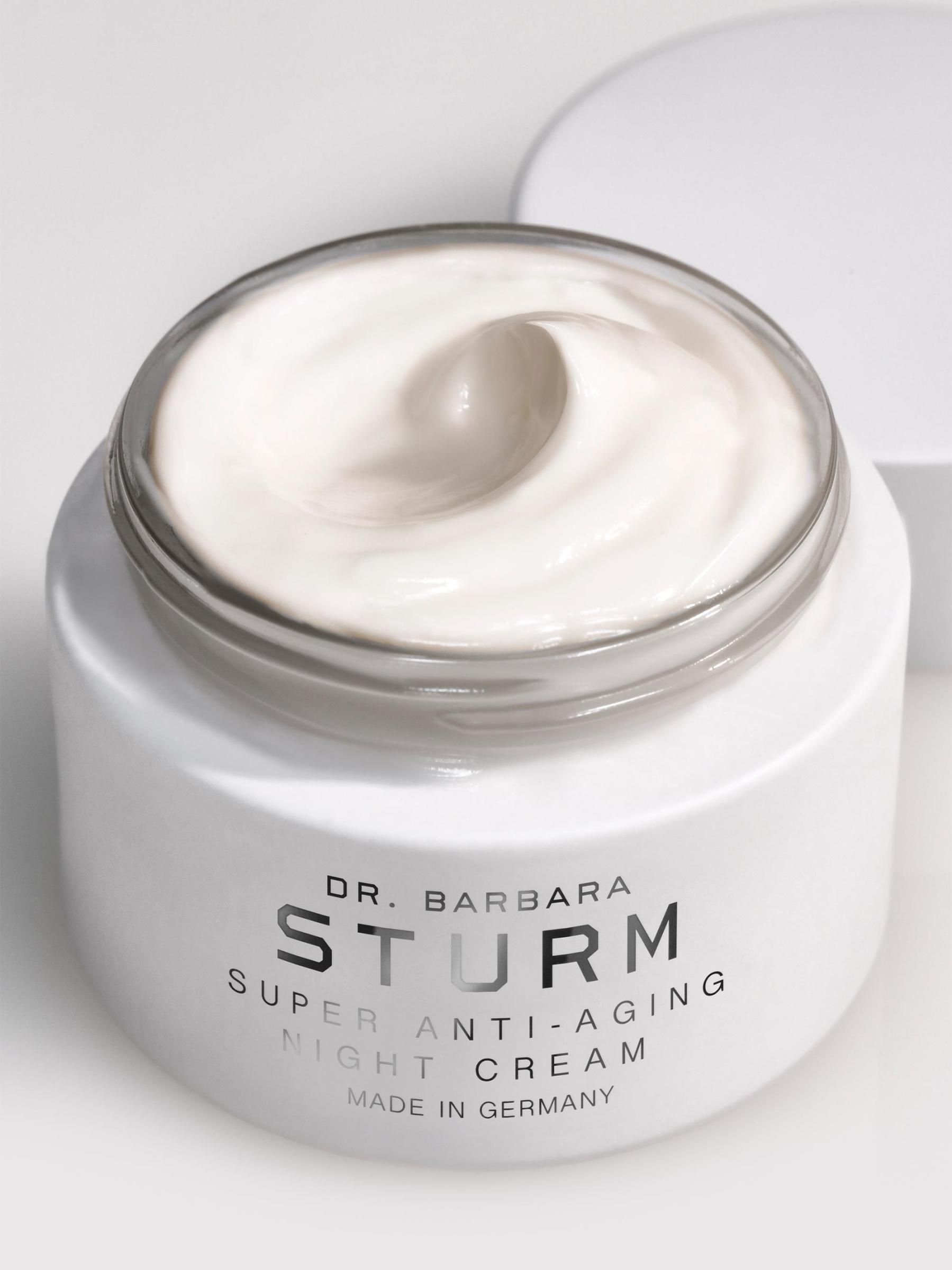 يعمل كريم Dr. Sturm الليلي الفائق المضاد للشيخوخة على تحسين عمليات التخلص من السموم من البشرة باستخدام الببتيد الخاص من الأفوكادو، والذي يساعد على التخلص من البروتين المؤكسد ويساعد الجسم على تجديد البروتينات والدهون والخلايا التي تضررت خلال اليوم بسبب أكسدة الجذور الحرة. يحتوي أيضًا على DBS Night System™ الحصري، وهو نظام علمي متقدم ثلاثي يدعم عمليات التجديد الليلي للبشرة ويترك الخلايا رطبة تمامًا حتى تتمكن من العمل بفعالية وتركيز طاقتها على الإصلاح والتجديد.