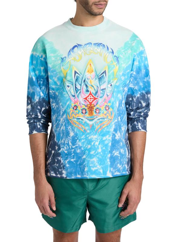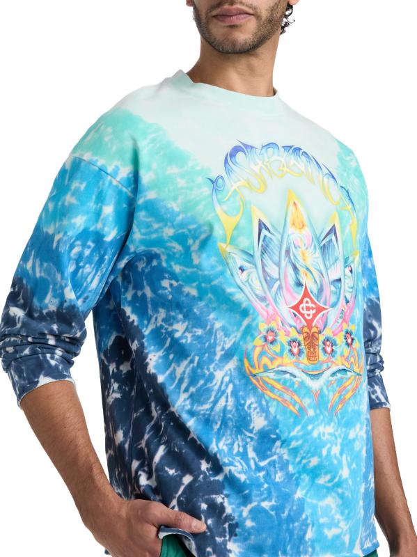 صُنع هذا القميص ذو الأكمام الطويلة من Casablance من القطن الجريء المصبوغ بربطة العنق، ويتميز بزخرفة Surf Lotus المخدرة.رقبة مستديرة أكمام طويلة تسحب قطن بنسبة 100% يُغسل في الغسالة صُنع في البرتغال