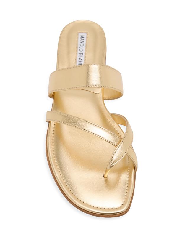 صندل Susa المسطح من Manolo Blahnik مصنوع من الجلد مع أحزمة متقاطعة.إصبع مفتوح سهل الارتداء الجزء العلوي مصنوع من الجلد بطانة جلدية نعل جلدي صُنع في إيطاليا