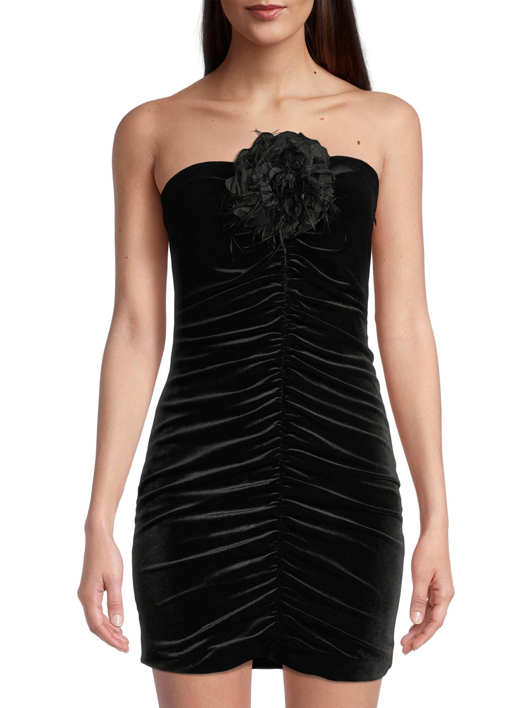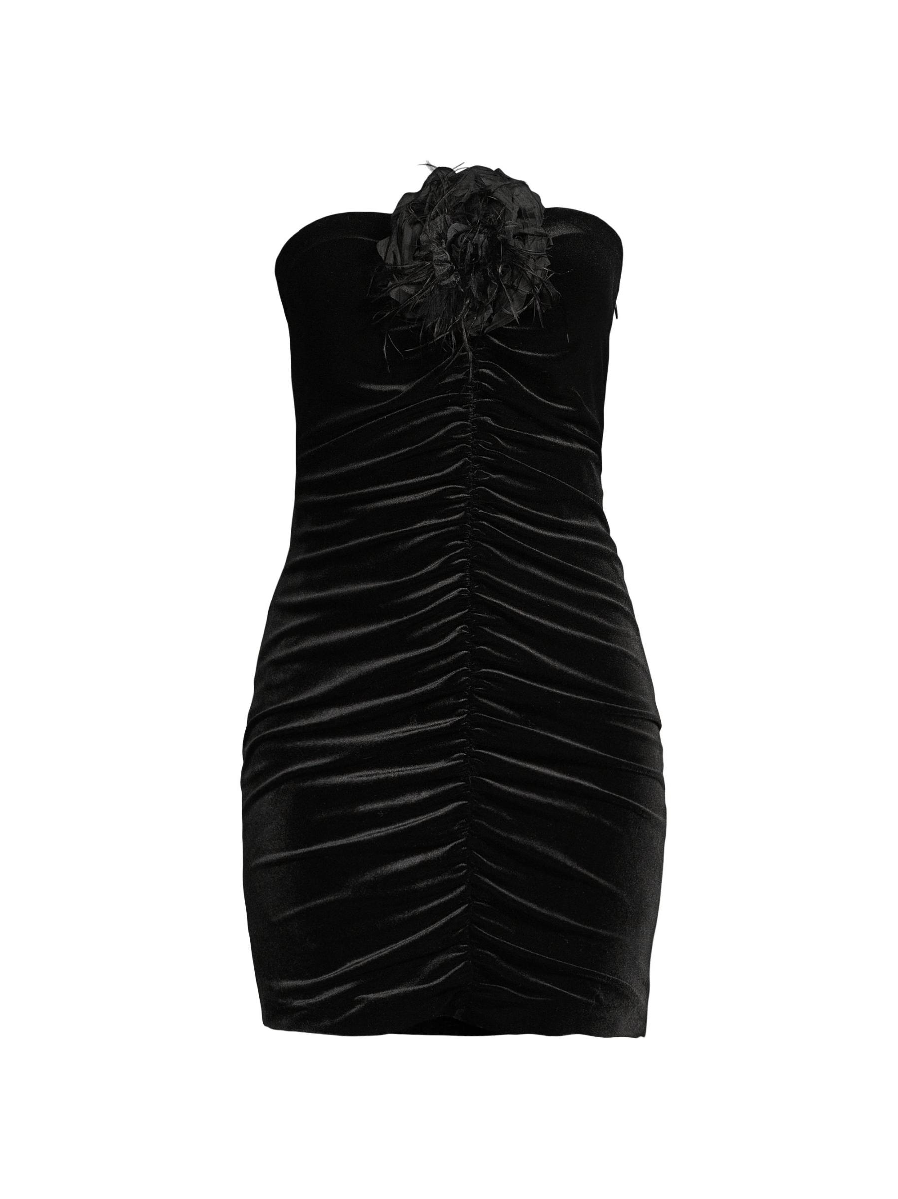 فستان سوزانا قصير من المخمل المزركش بدون حمالات