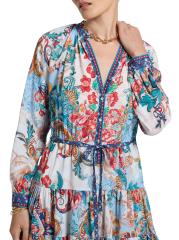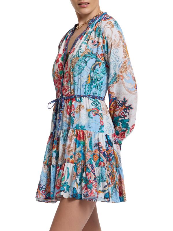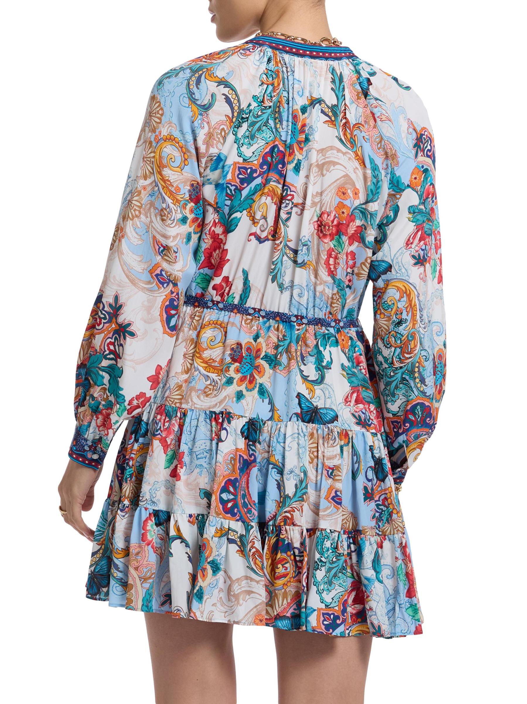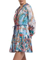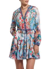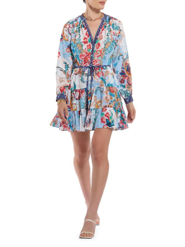 من مجموعة سيدني. صُنع هذا الفستان القصير من سيدني على شكل حرف A من روبرت غراهام من مزيج الحرير اللامع، ويتميز بياقة منقسمة وأكمام طويلة وخصر برباط.
