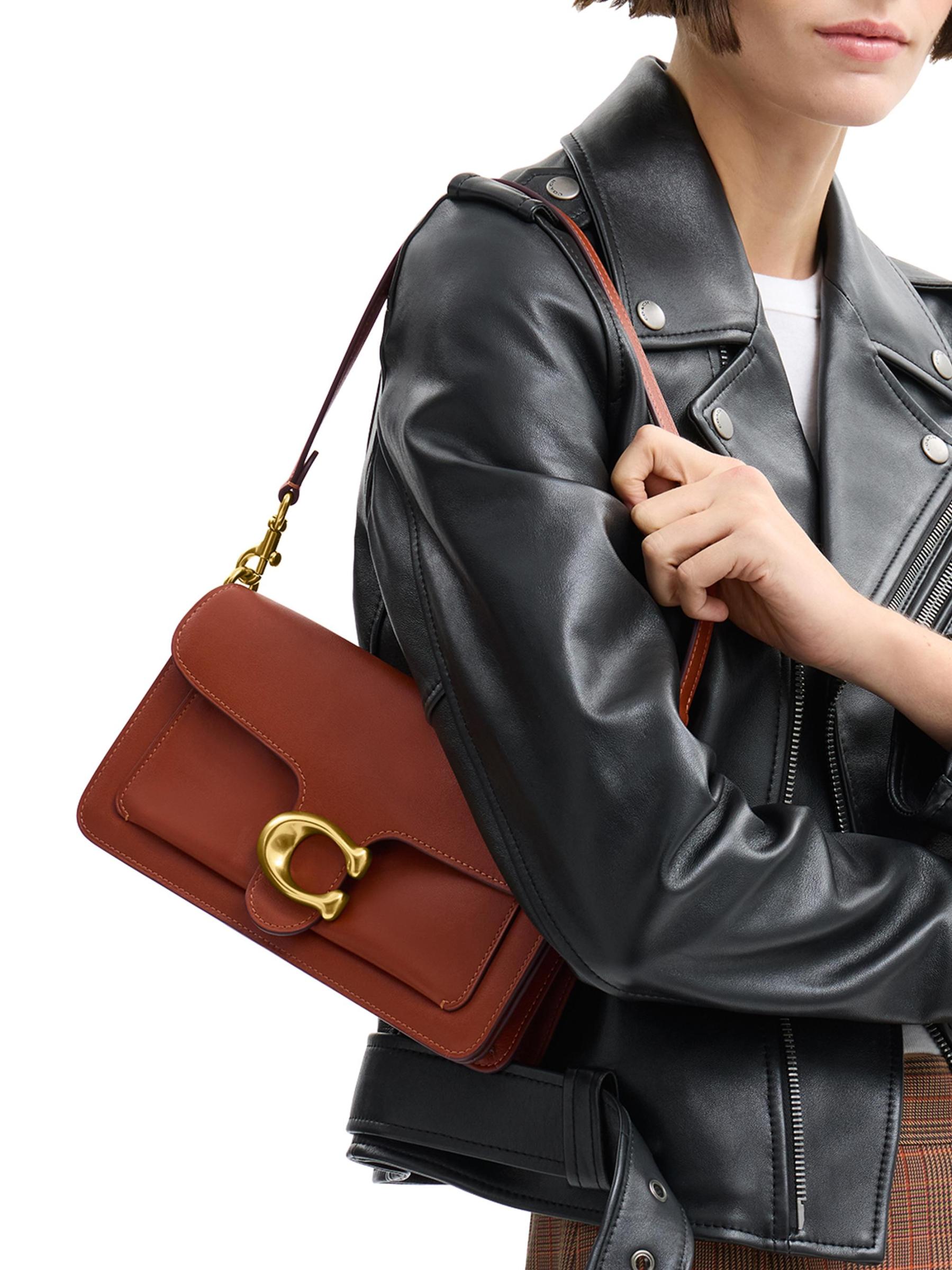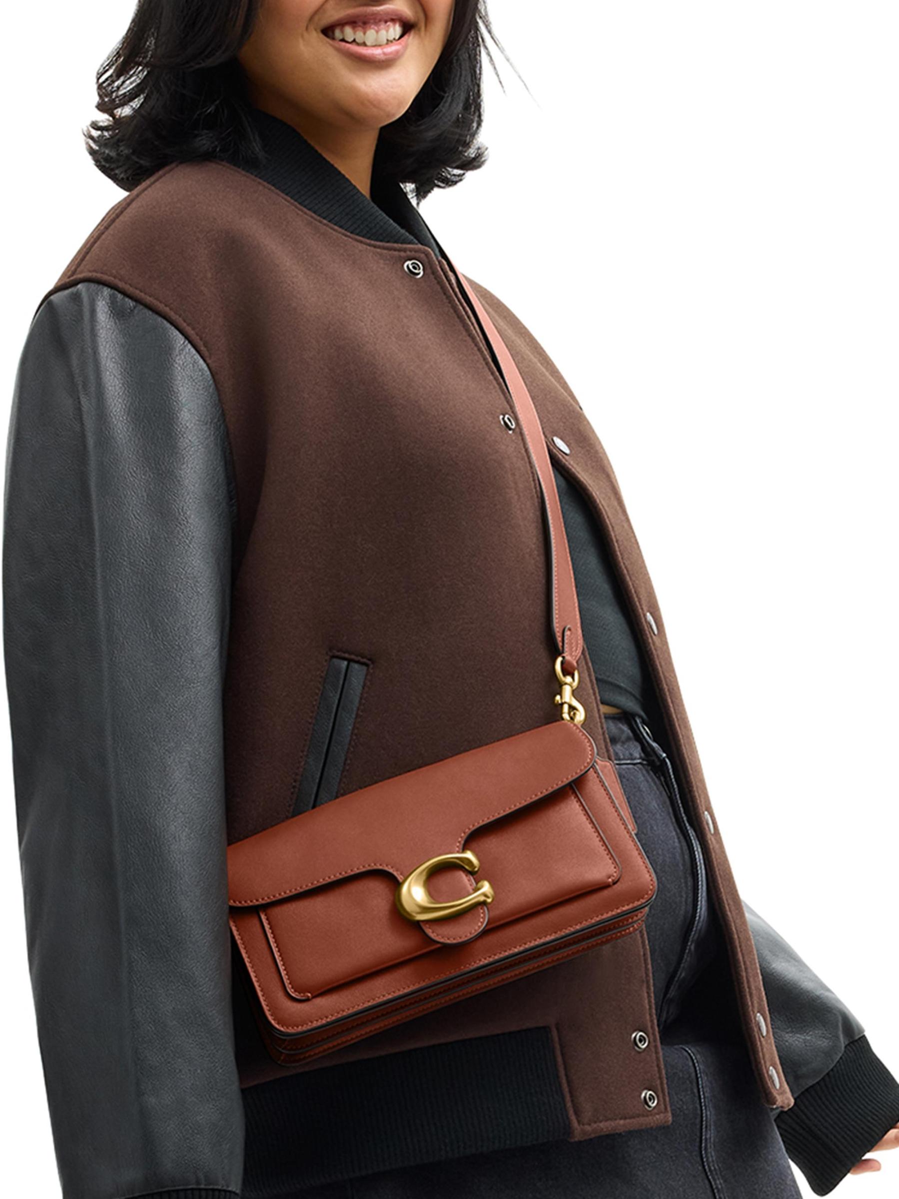 حقيبة الكتف Tabby هذه من COACH مصنوعة من الجلد الطبيعي وتتميز بأحزمة قابلة للإزالة لتصميم متعدد الاستخدامات.