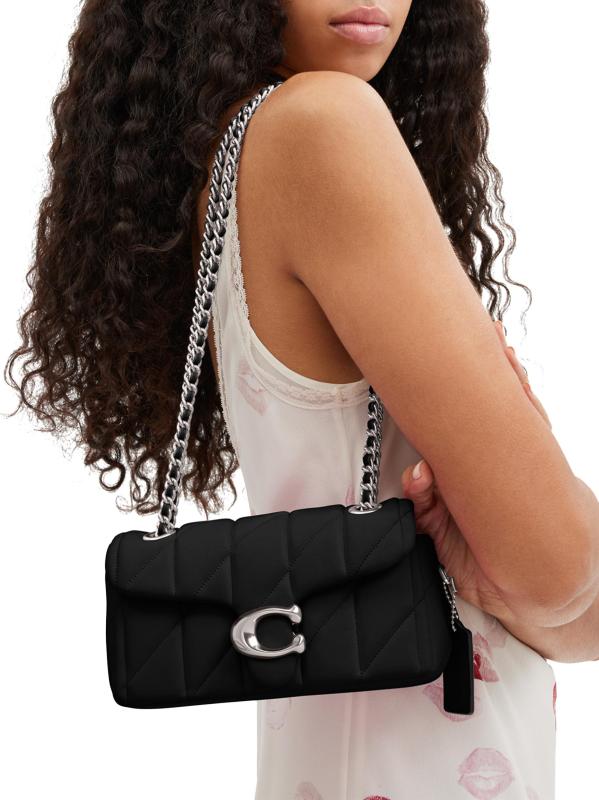تم تصميم حقيبة الكتف Tabby من COACH المصنوعة من الجلد المبطن بحزام على شكل سلسلة وأجزاء معدنية فضية اللون C.