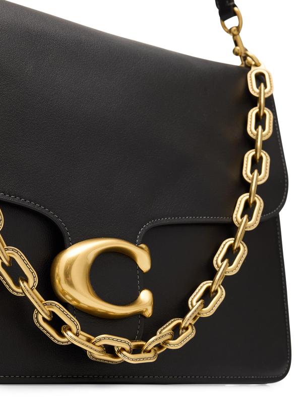 حقيبة الكتف Tabby من COACH مصنوعة من الجلد الحبيبي الناعم مع أجزاء معدنية بشعار ذهبي اللون وحزام سلسلة قابل للإزالة.