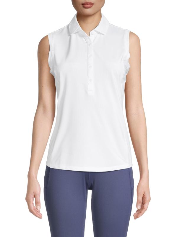 تم تصميم بولو تاي بدون أكمام من ماركة الملابس الرياضية Zero Restriction من قماش عالي الأداء في صورة ظلية مستقيمة. يُكمل المظهر ياقة كلاسيكية واسعة وفتحة بأزرار أمامية.