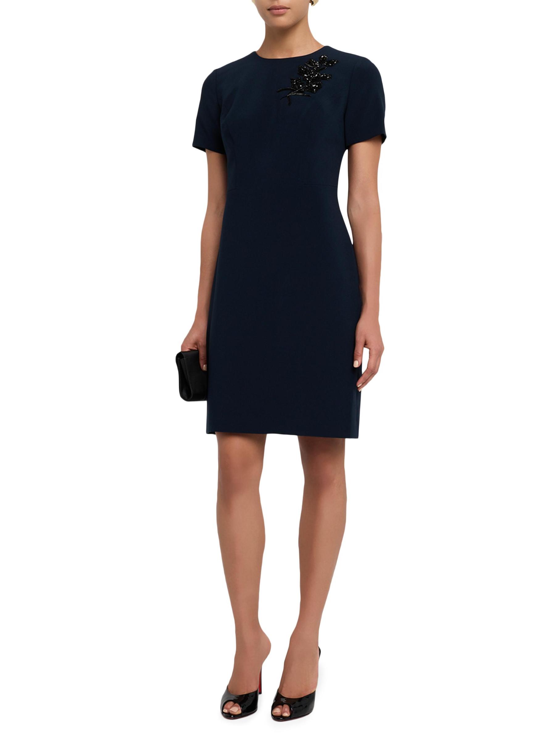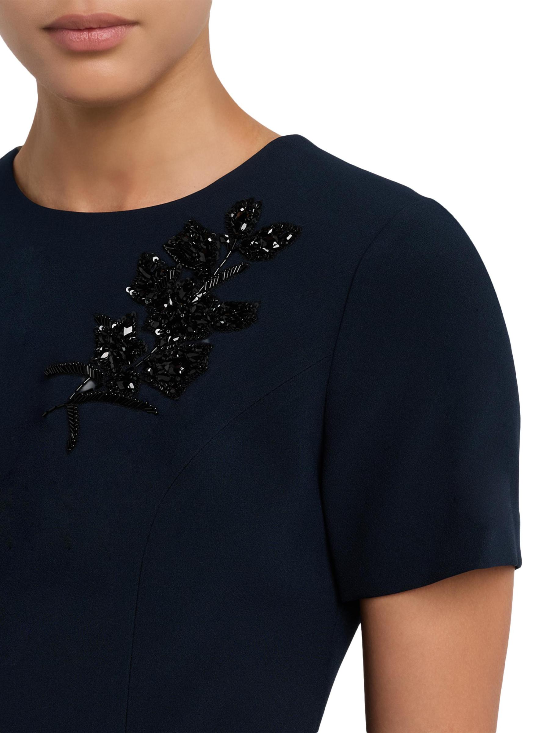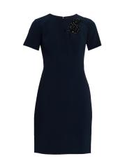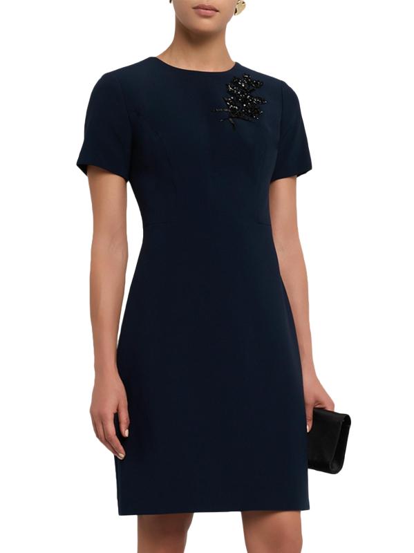 Babi من الكريب المنظم مع لمسة زهرية مطرزة خفيفة على الكتف.رقبة مستديرة أكمام قصيرة إغلاق بسحّاب خلفي مخفي 100% بوليستر البطانة: 100% بوليستر تنظيف جاف مستوردة