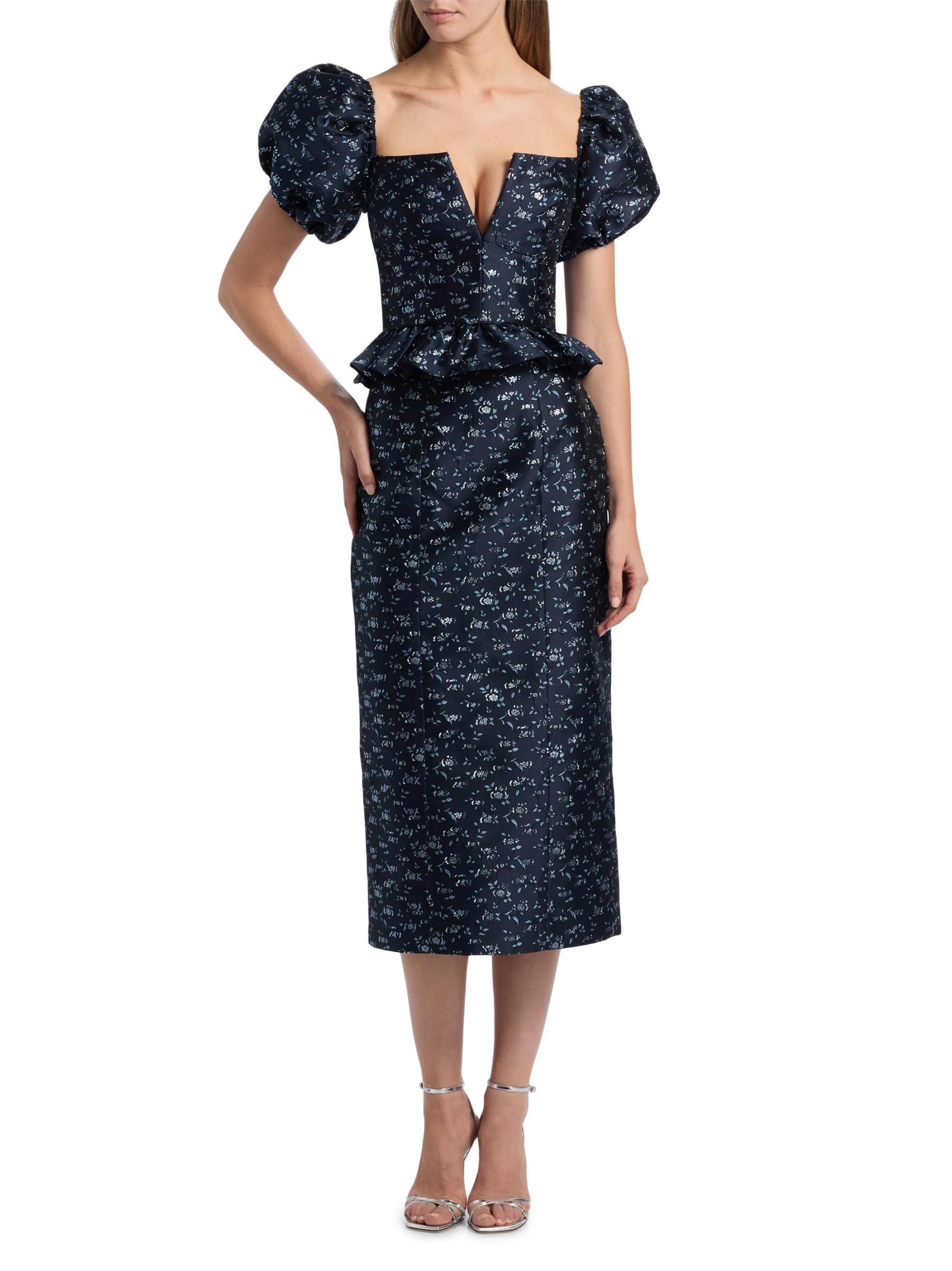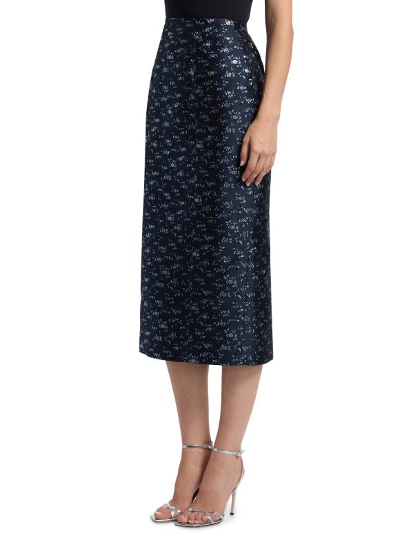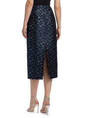 حصري. تتميّز التنورة المتوسطة بقلم تامي من ماركاريان، المصنوعة من القماش المزركش في الولايات المتحدة الأمريكية، بنقشة زهور أنيقة.شق خلفي إغلاق بسحّاب خلفي 53% بوليستر/ 47% بوليستر معدني البطانة: 100% حرير تنظيف جاف صُنع في الولايات المتحدة الأمريكية من قماش إيطالي