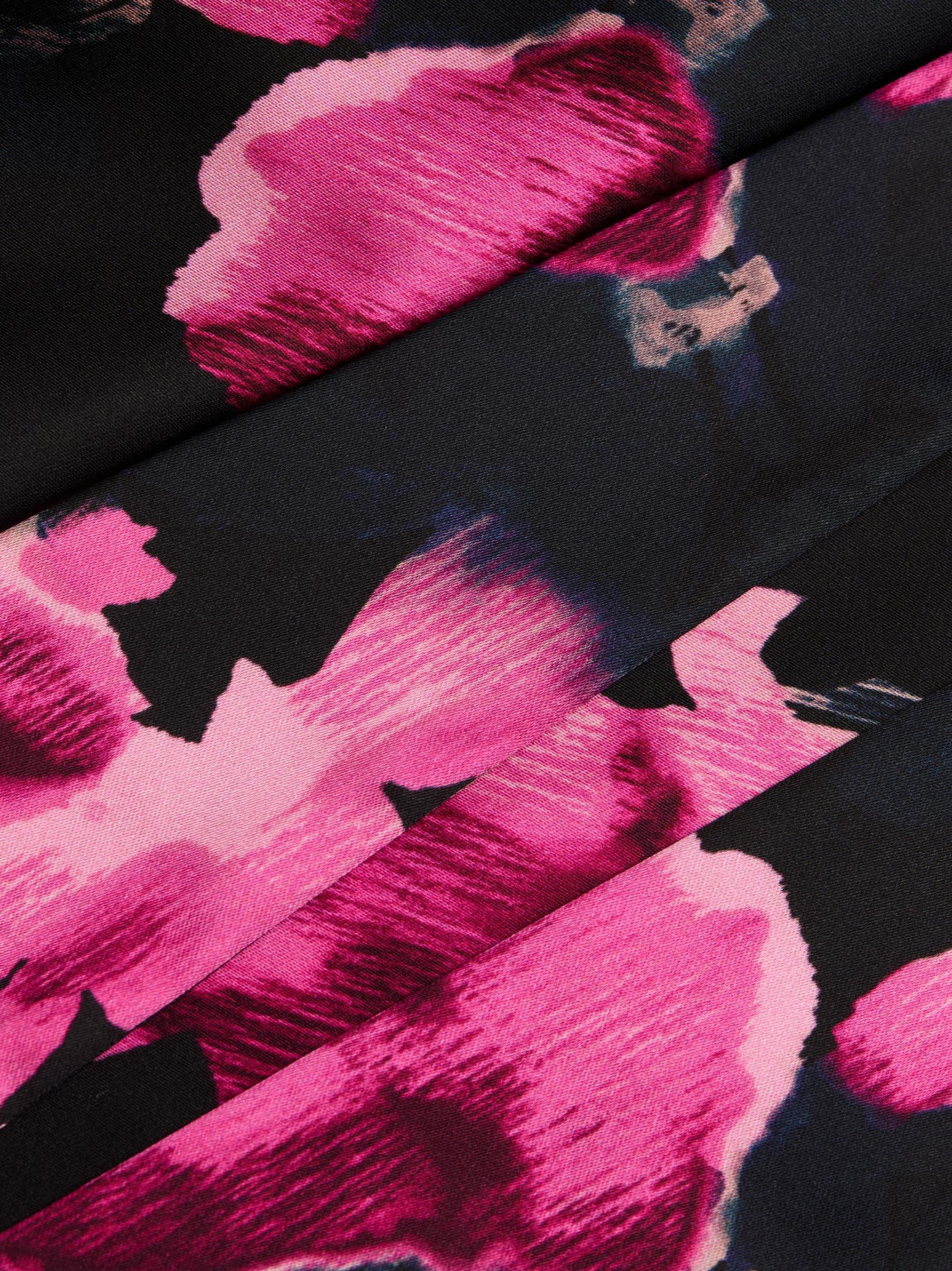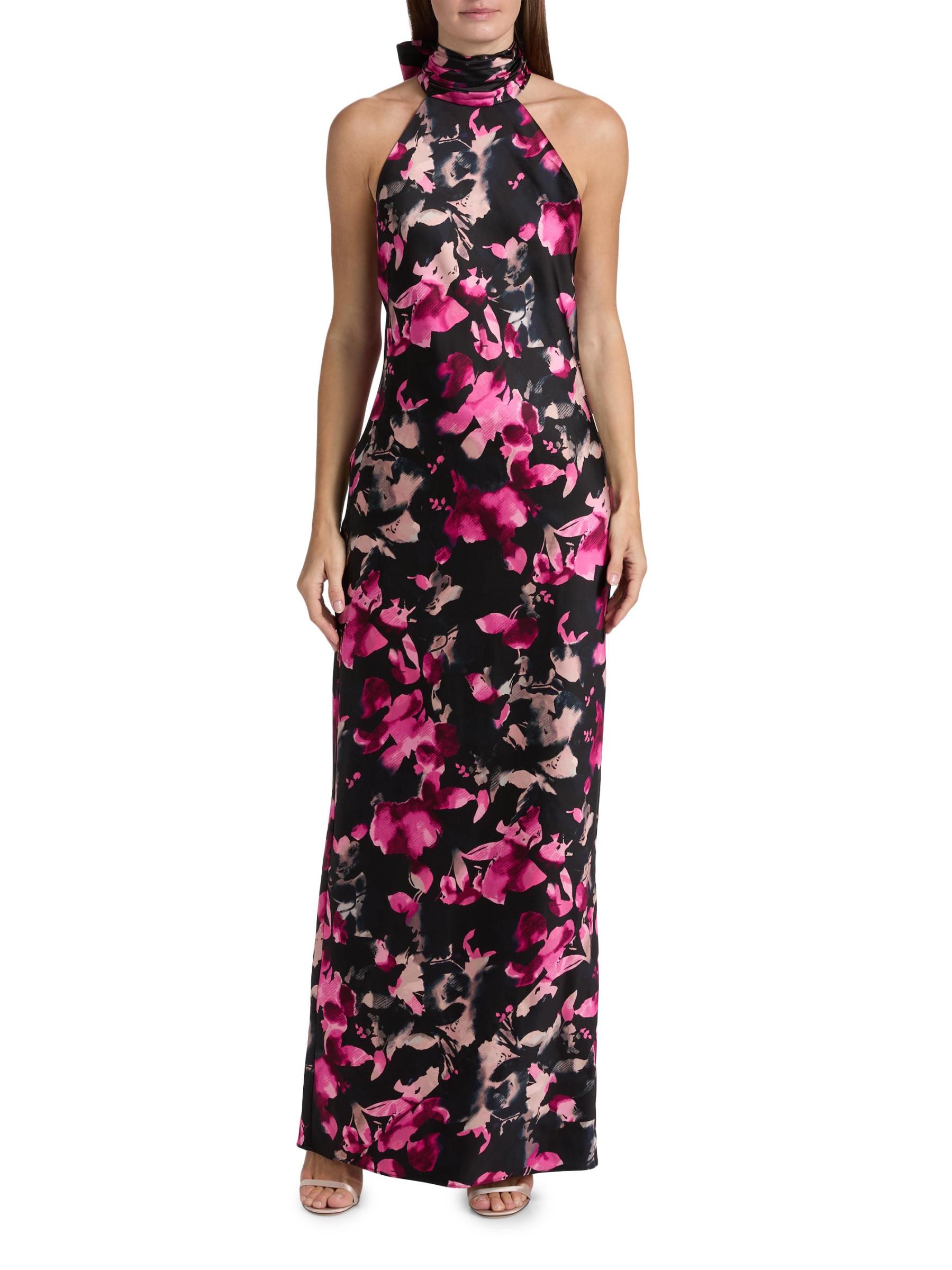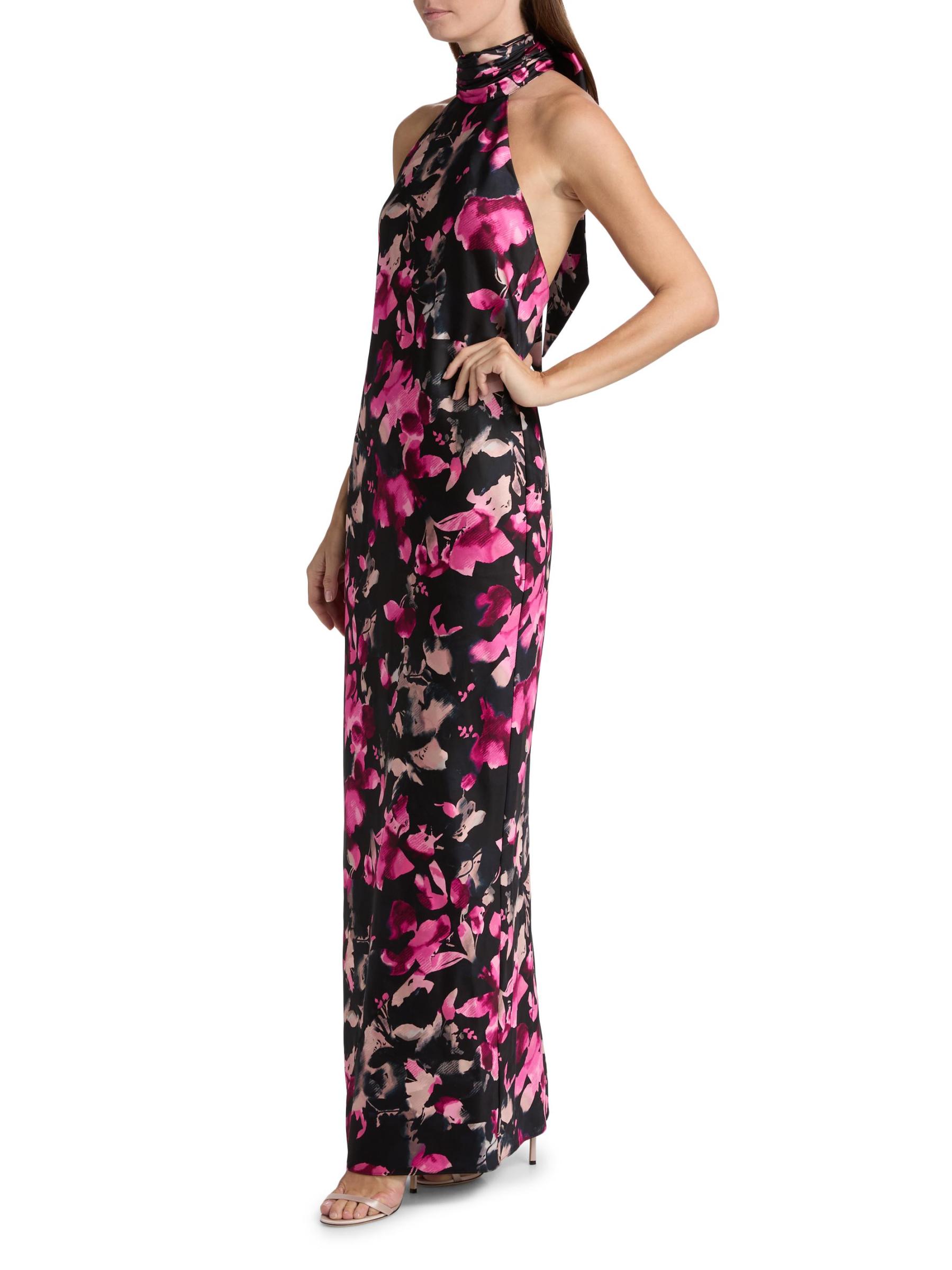حصري. يتميّز فستان تاتيانا من رامي بروك، المنسوج من الساتان المرن والأنيق، بتقويرة عالية برباط ذاتي وفتحة ظهر أنيقة. تزين هذه القطعة طبعة زهرية.