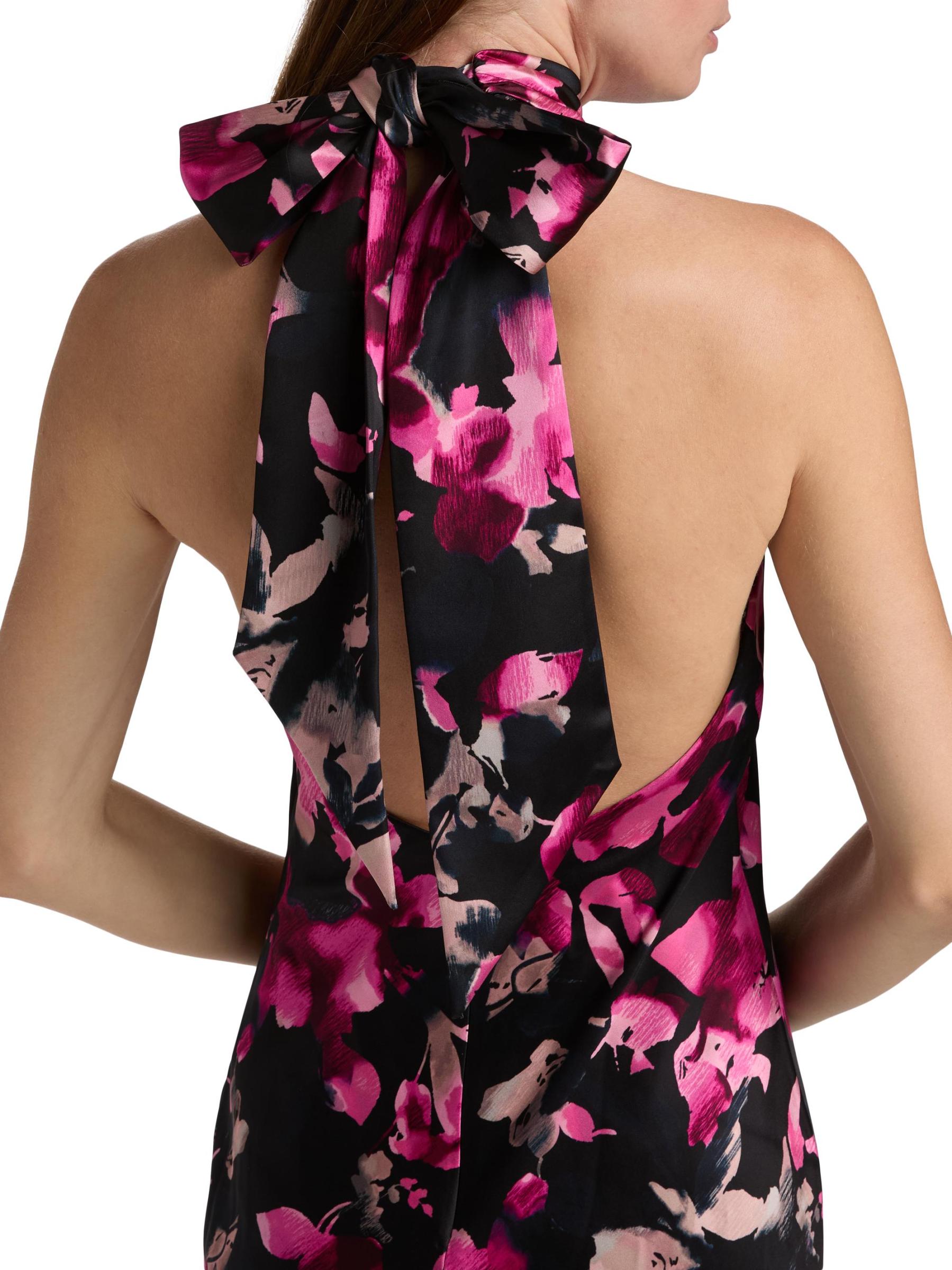 حصري. يتميّز فستان تاتيانا من رامي بروك، المنسوج من الساتان المرن والأنيق، بتقويرة عالية برباط ذاتي وفتحة ظهر أنيقة. تزين هذه القطعة طبعة زهرية.رقبة عالية مع إغلاق برباط ذاتي بدون أكمام افتح مرة أخرى إغلاق بسحّاب خلفي مخفي 100% بوليستر تنظيف جاف مستوردة