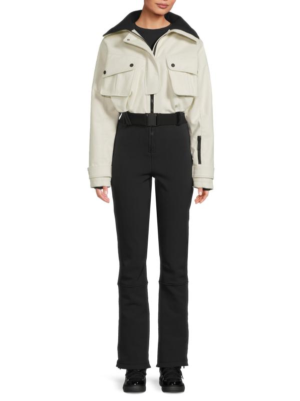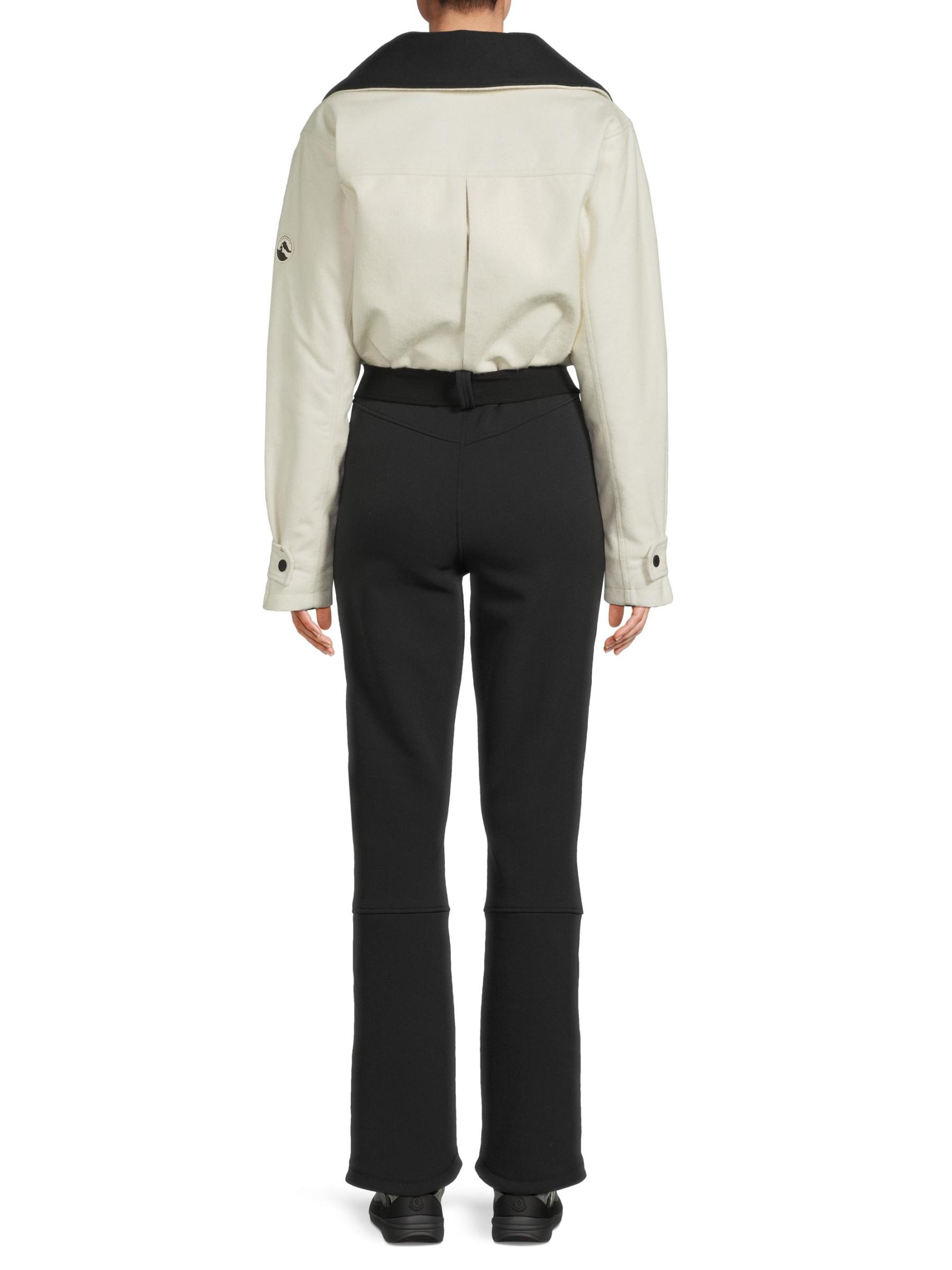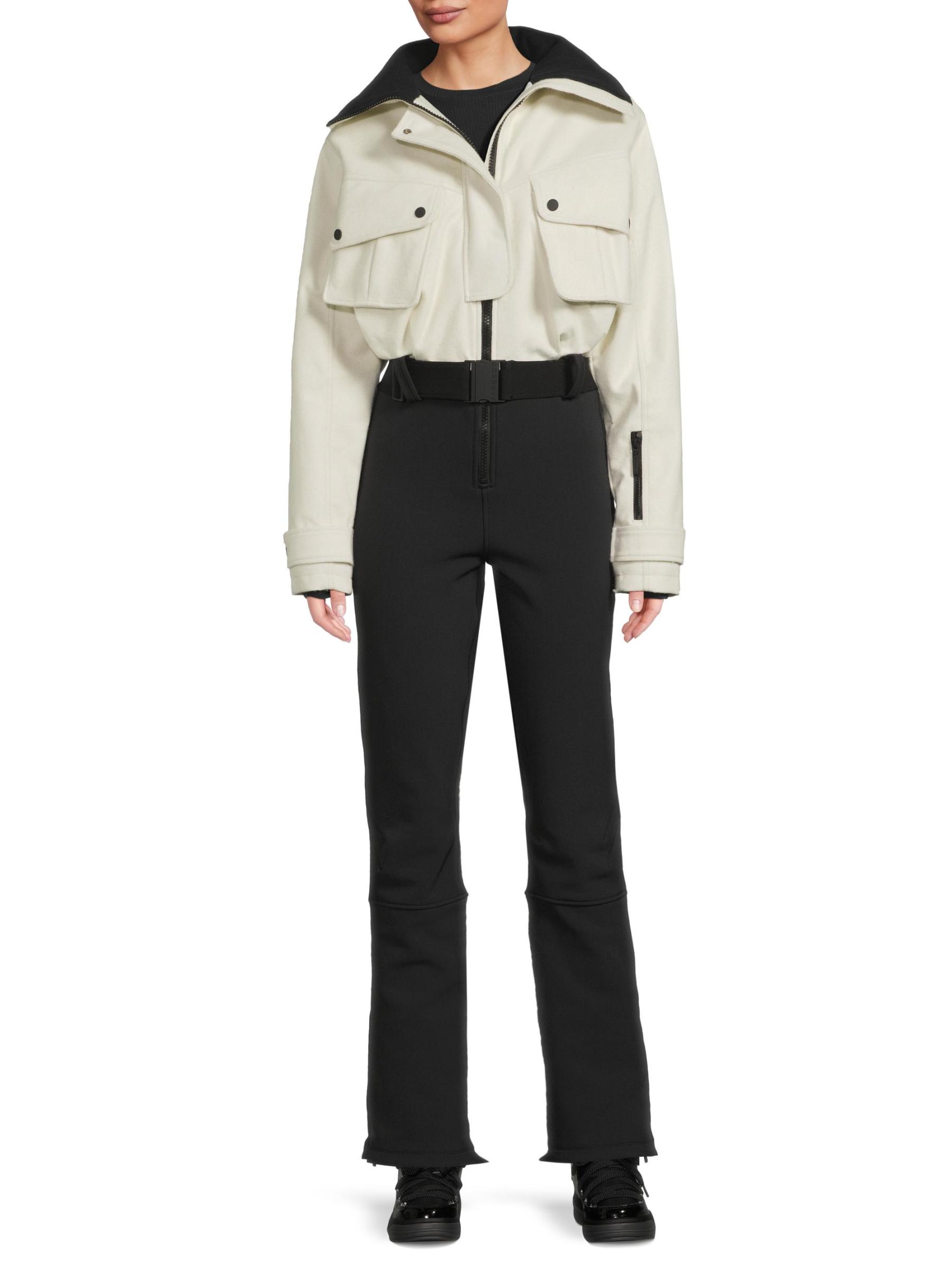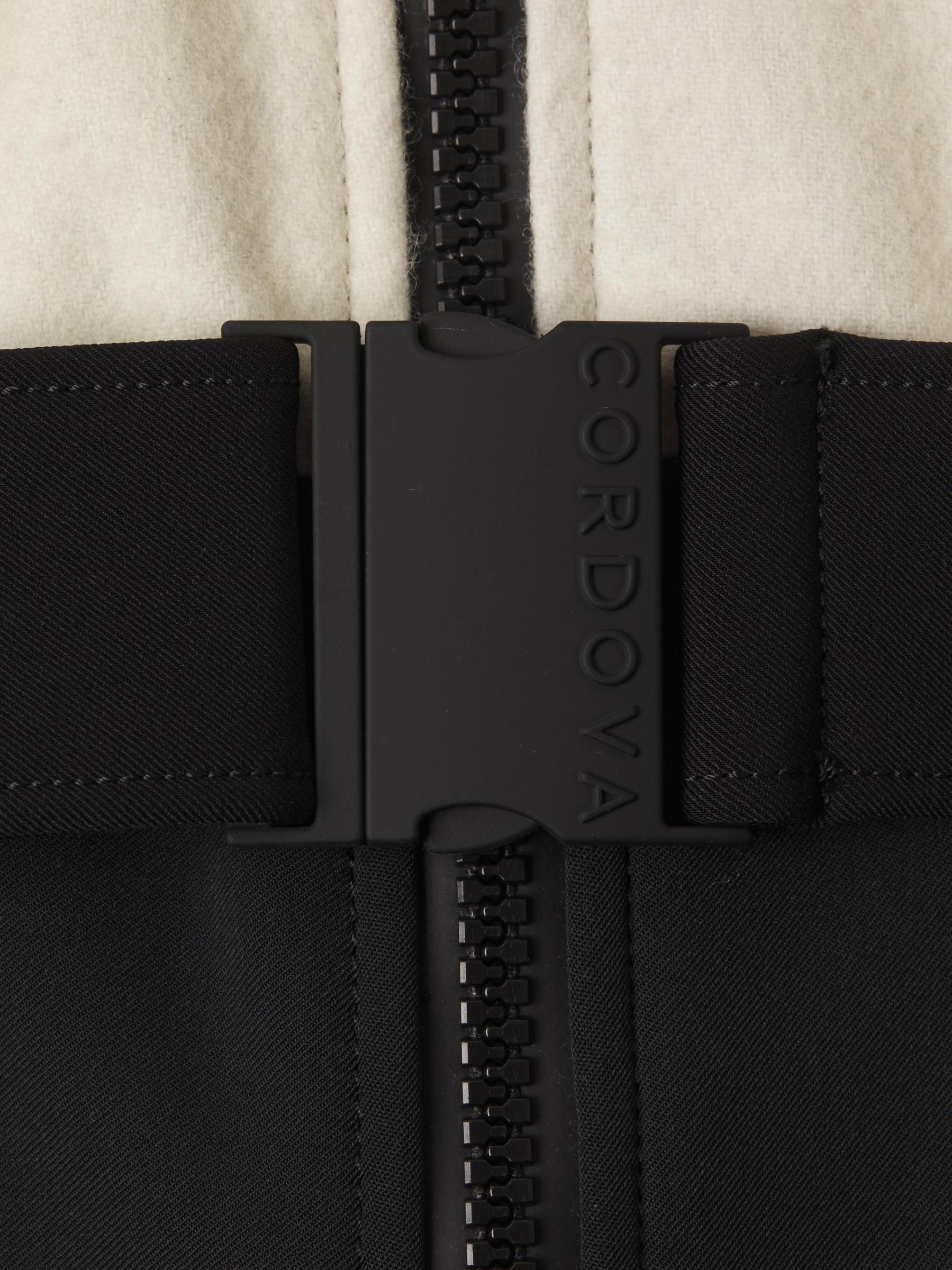 تبرز تفاصيل التصميم المنحنيات مع الحفاظ على إيماءات ملابس العمل المميزة لبدلة كوردوفا الثلجية هذه. بلوزة من الصوف المعزول وبنطال مقاوم للماء فوق الحذاء يجعلان من تيلورايد مظهرًا مناسبًا للمنحدرات.