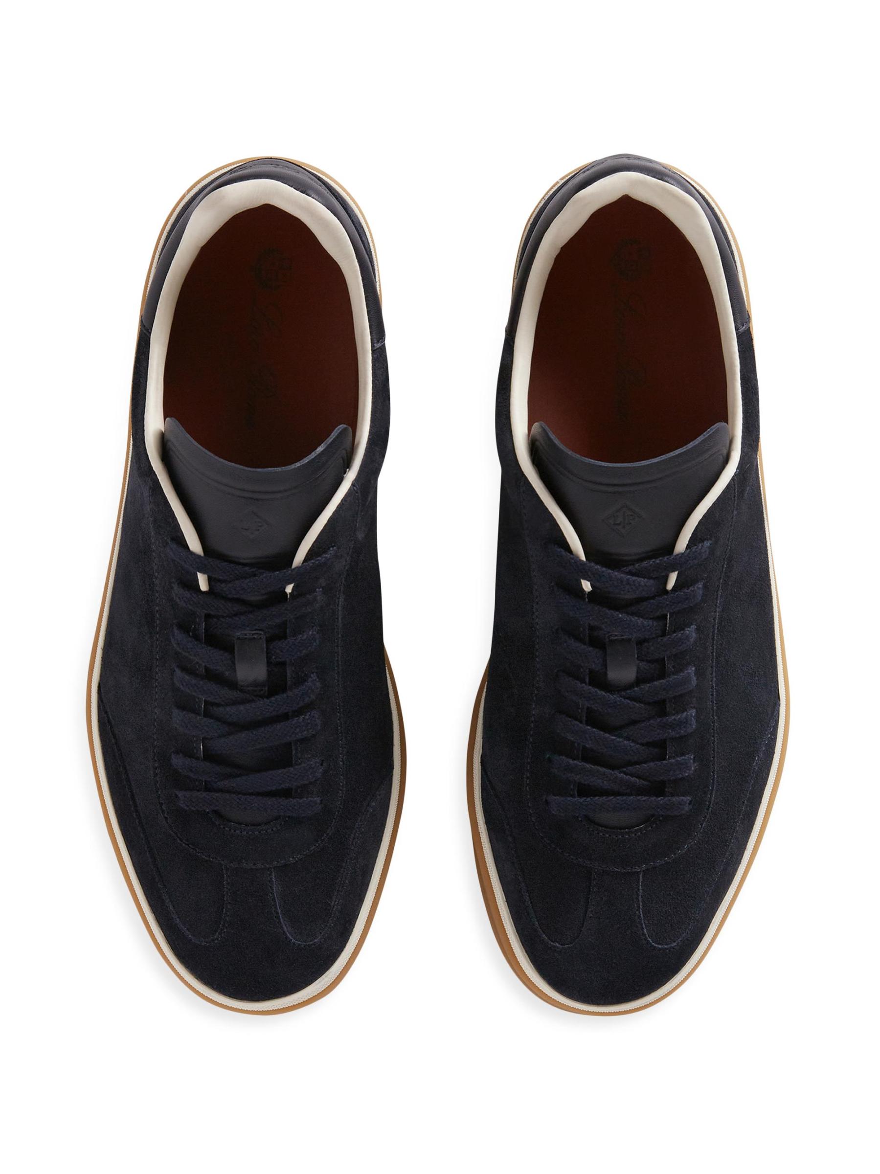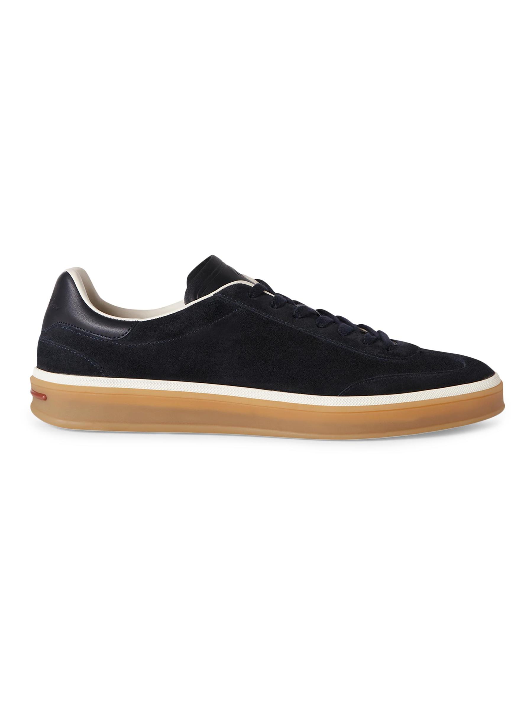 يتميز حذاء Tennis Walk الرياضي من Loro Piana المصنوع من الجلد المدبوغ المرن بمقدمة مستديرة وتصميم بأربطة ونعل مطاطي.