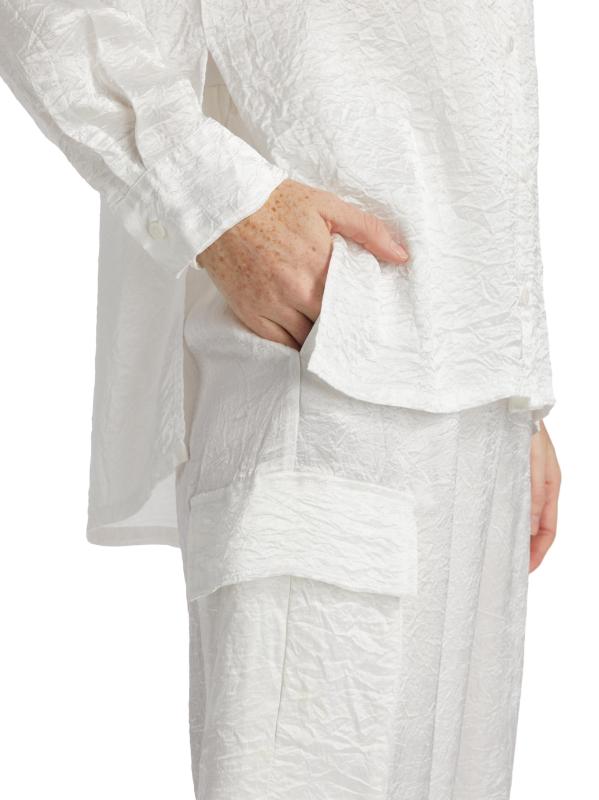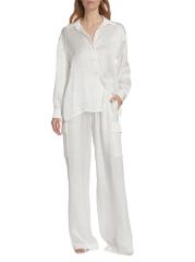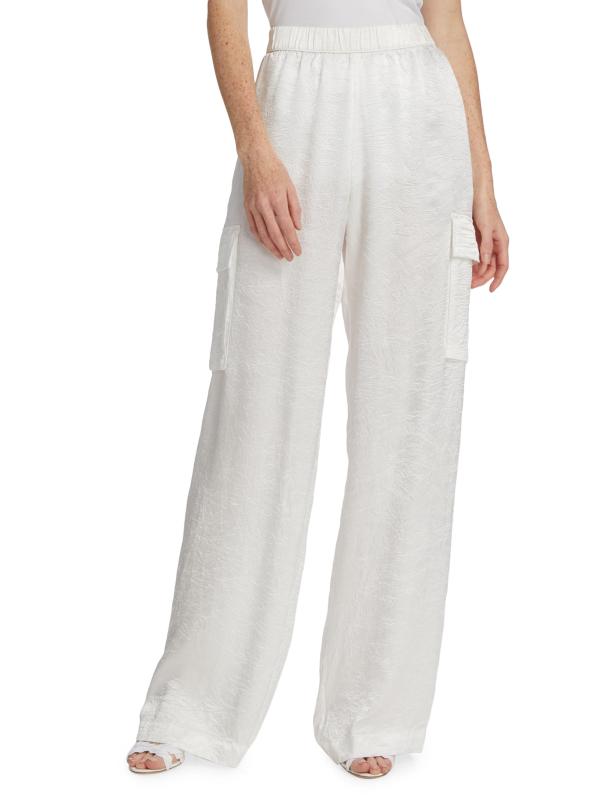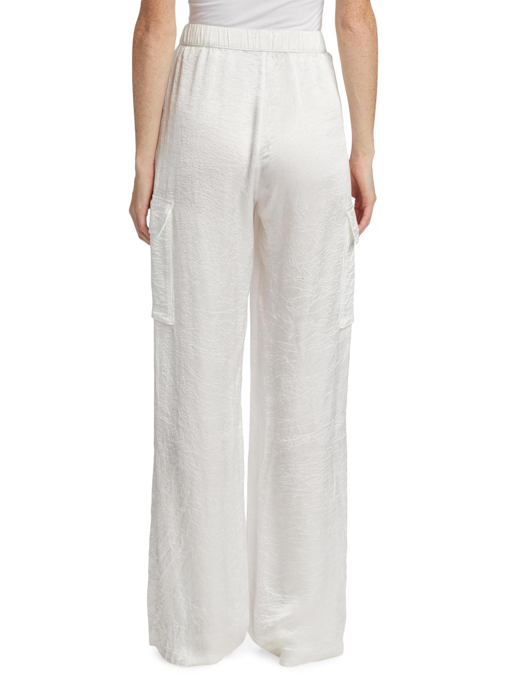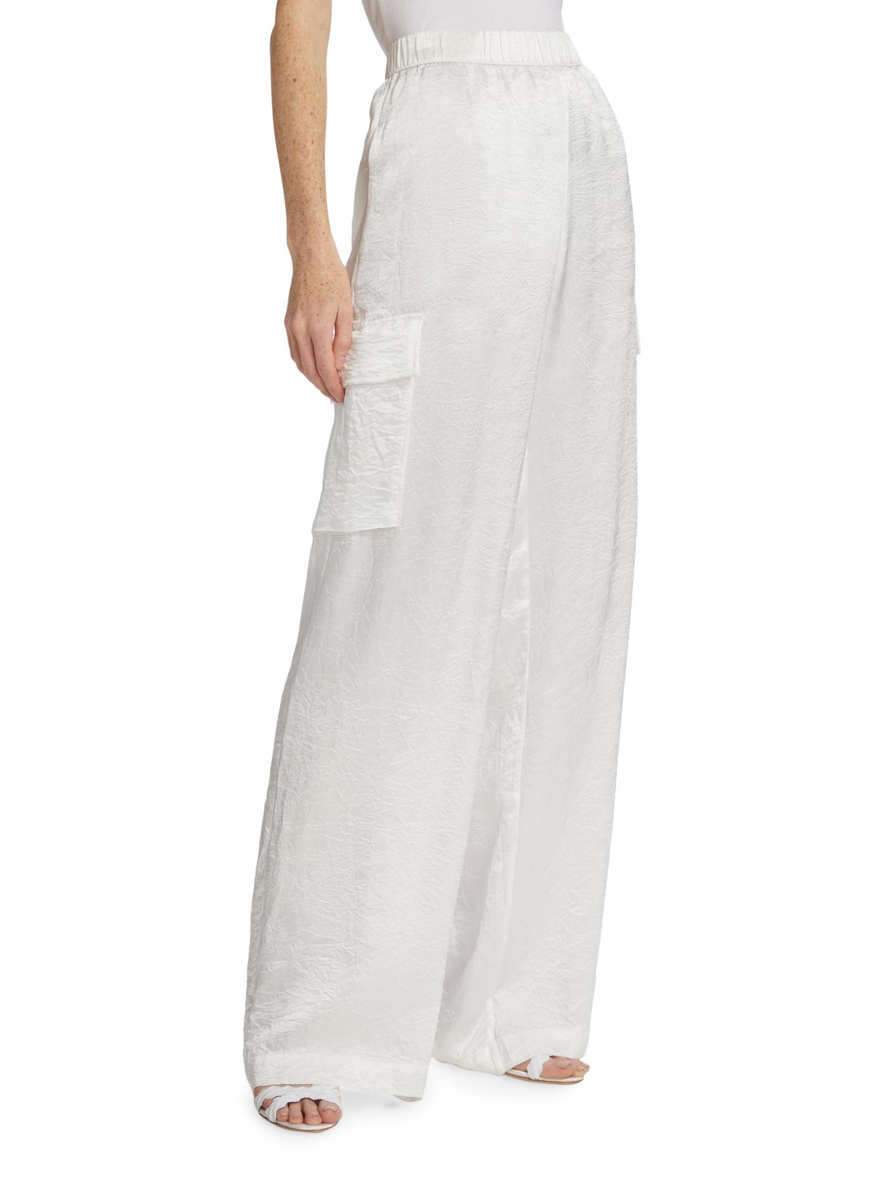بنطال كارغو من Enza Costa مصنوع من الساتان المنقوش. يتميز هذا الطراز المستوحى من المرافق بحزام خصر مطاطي وأربعة جيوب عملية.