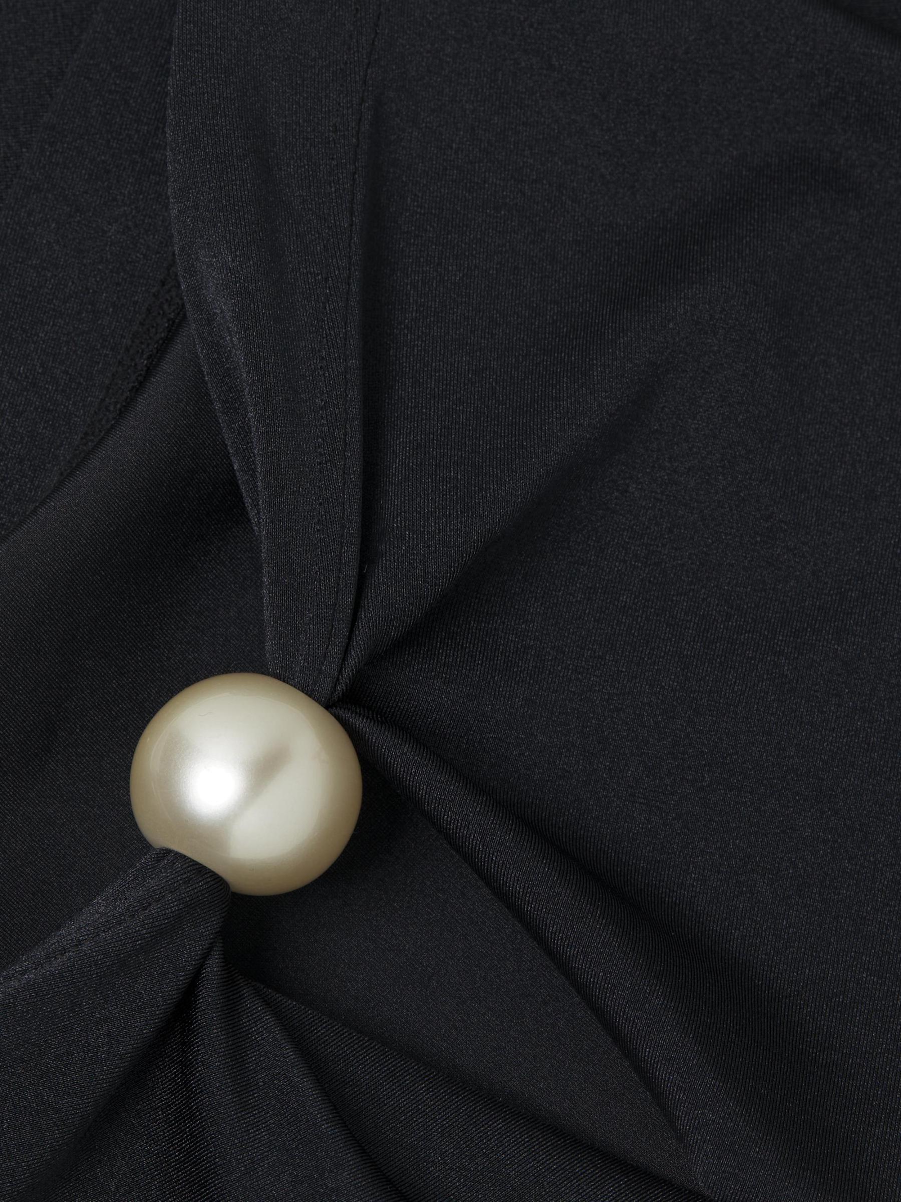تتميز تنورة Thalia القصيرة من Shani Shemer بتصميم أنيق غير متماثل مع شق جانبي مفتوح وتفاصيل لؤلؤية عند الورك.