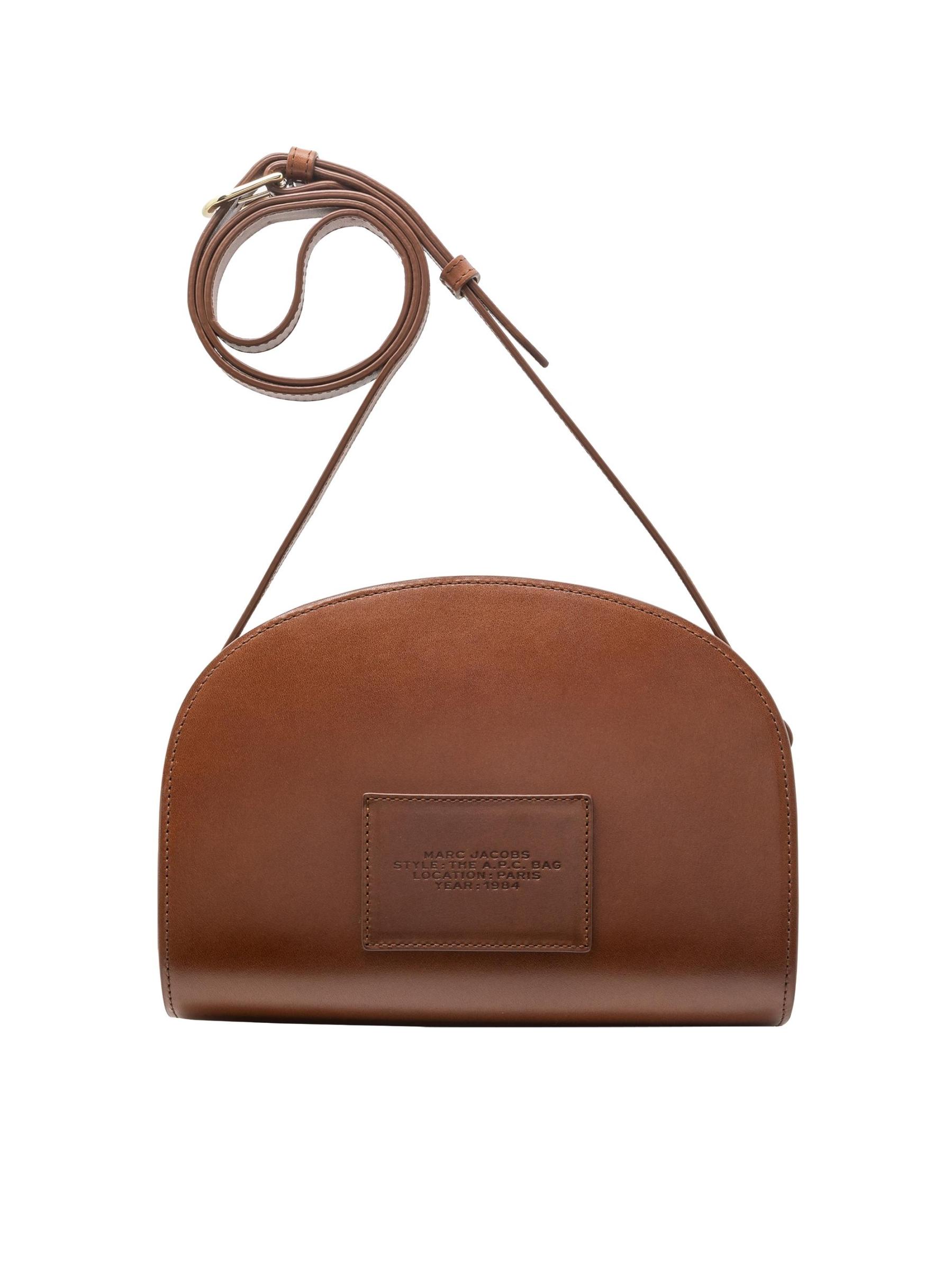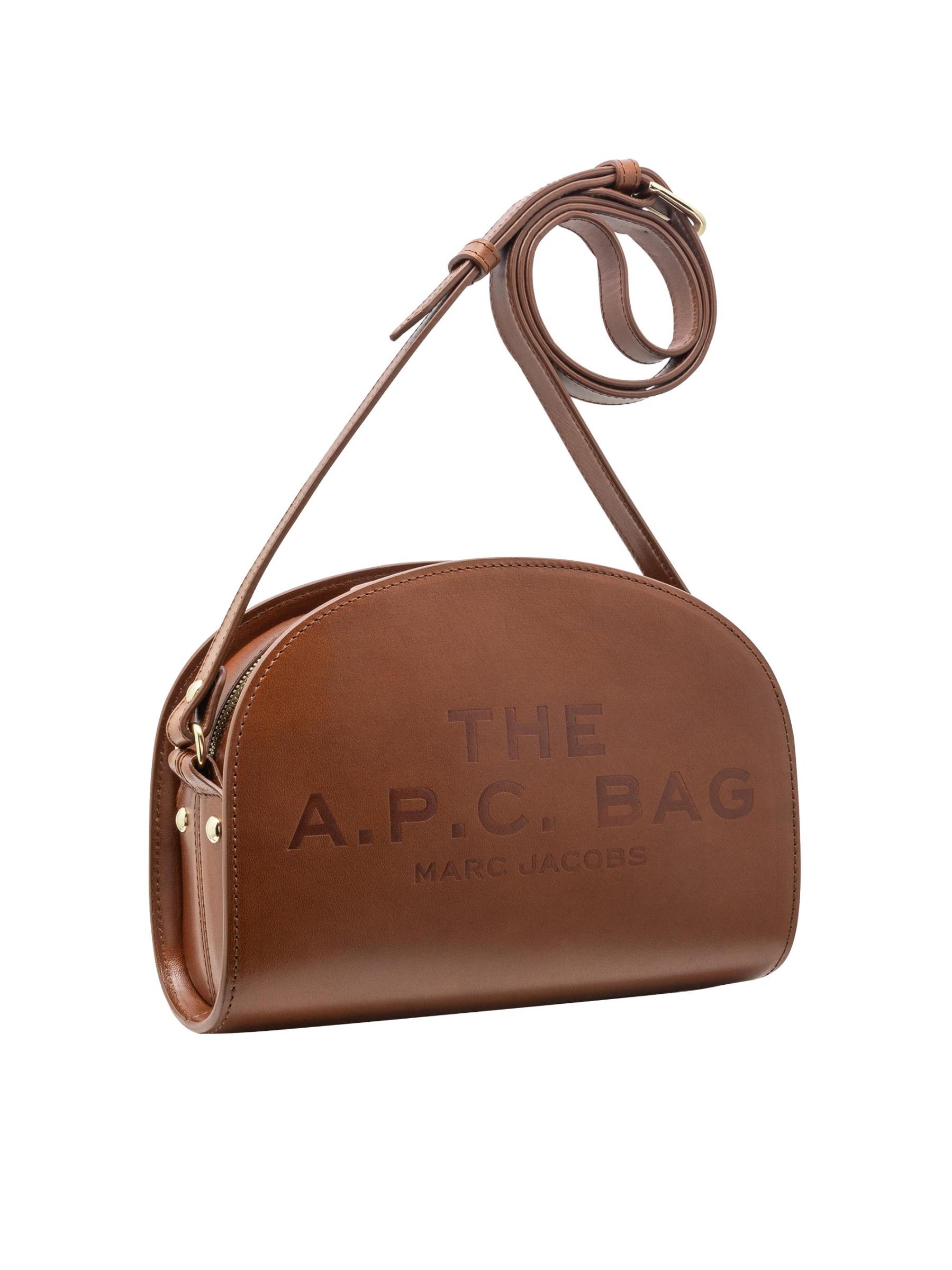 تتميز حقيبة A.P.C. من Marc Jacobs x A.P.C. بشكل نصف القمر ومصنوعة من الجلد. تتميز هذه القطعة بشعار العلامة التجارية المنقوش على الجهة الأمامية ويتم تثبيتها بسحّاب ذهبي اللون في الجزء العلوي.