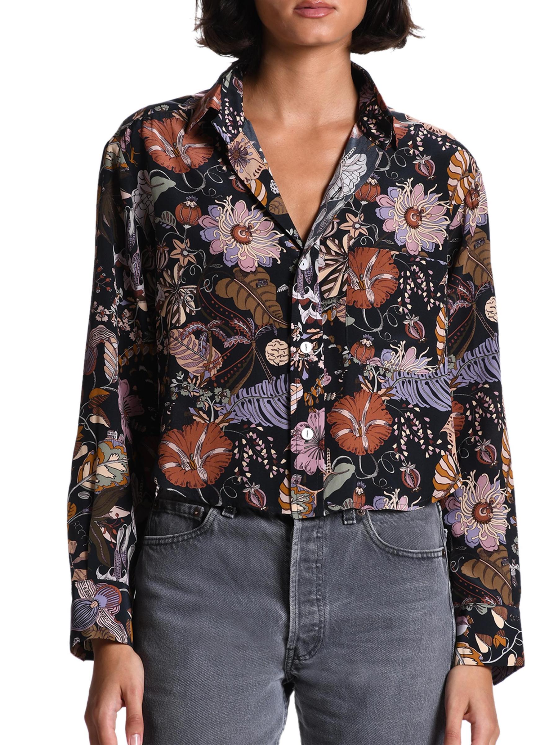 صُمم قميص CISSA هذا المصنوع من حرير Liberty of London™ بطبعة مختلطة بين الأزهار والطيور وصورة ظلية مريحة.