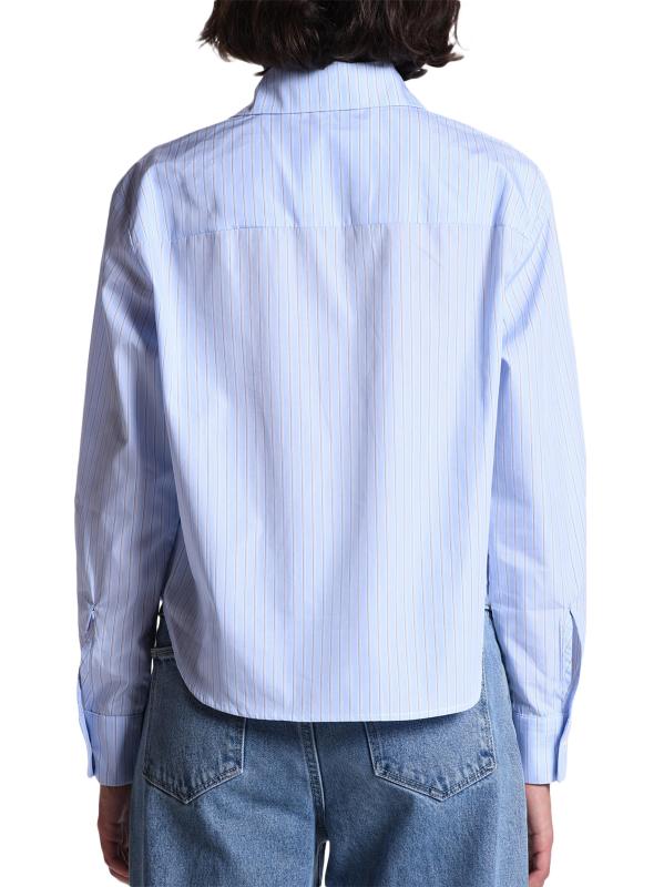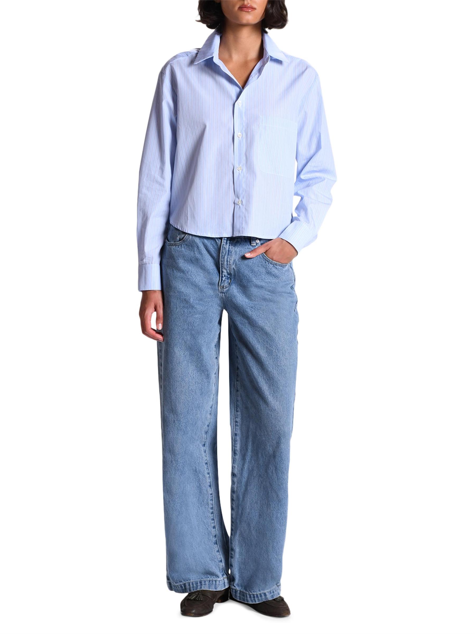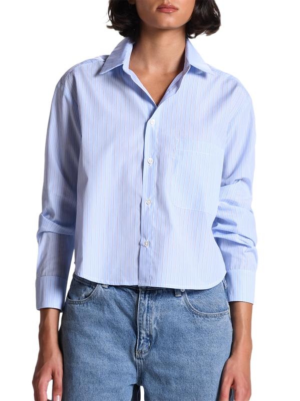صُنع قميص The Belle من Cissa من القطن المصري المقلّم القابل للتهوية، وهو مصمم بشكل صندوقي بطول الورك مع جيب خارجي على الصدر.