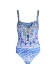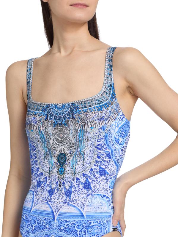 تتميز ملابس السباحة هذه المكونة من قطعة واحدة من Camilla بنقشة البوسفور مع أنماط زخرفية متعددة الطبقات ورقبة مربعة وسلك سفلي للدعم.