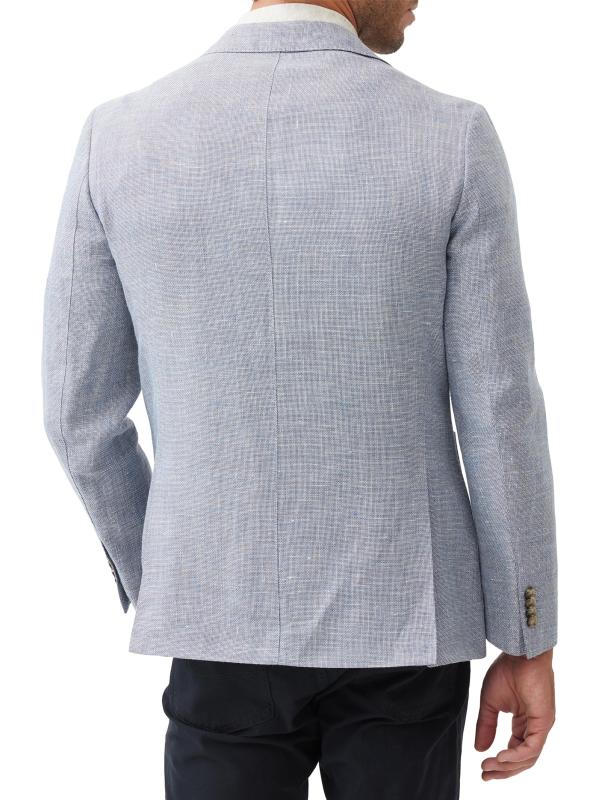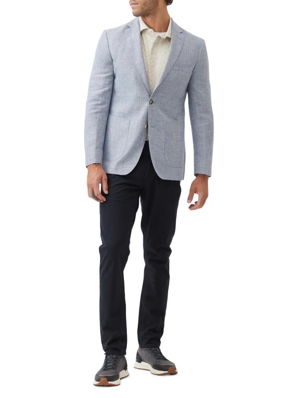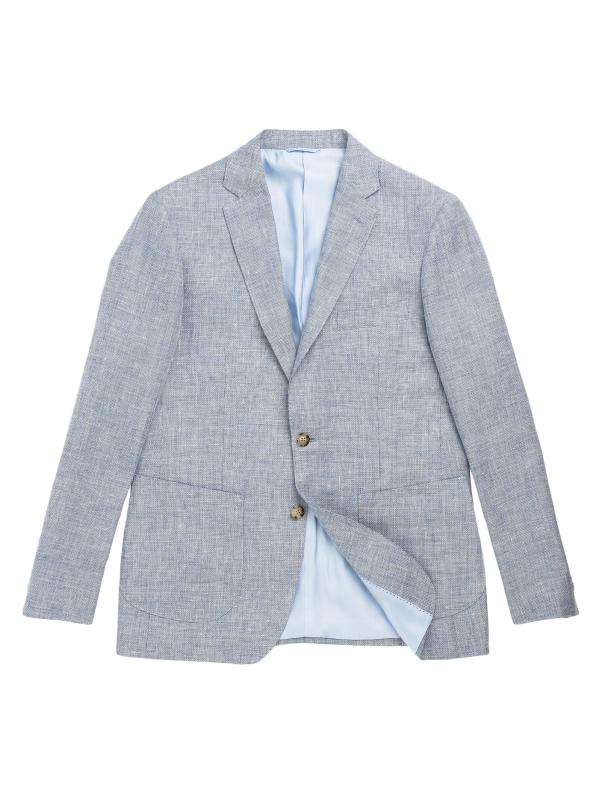 Gunn بثنيات مشقوقة وجيوب جانبية وإغلاق بزرين. يوفر التصميم المصمم خصيصًا، المصنوع من مزيج من الكتان الخفيف والصوف، ملاءمة نحيفة.