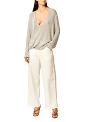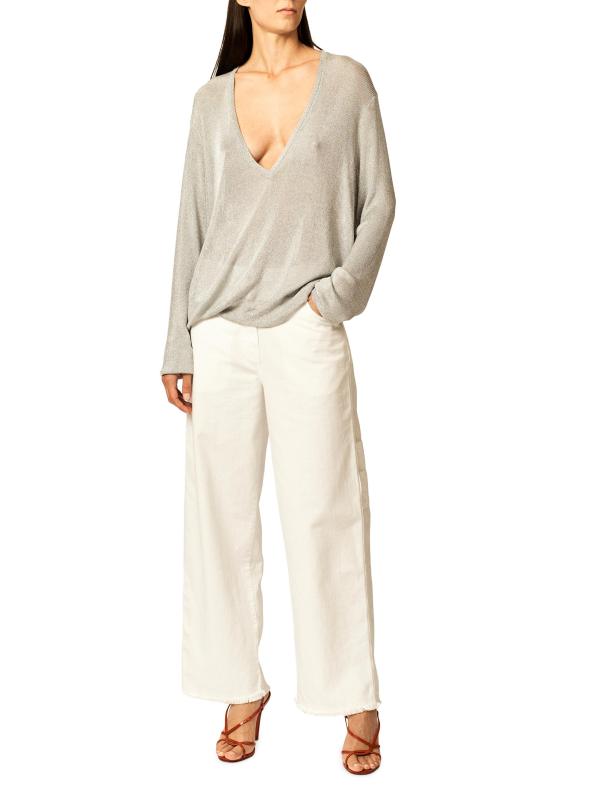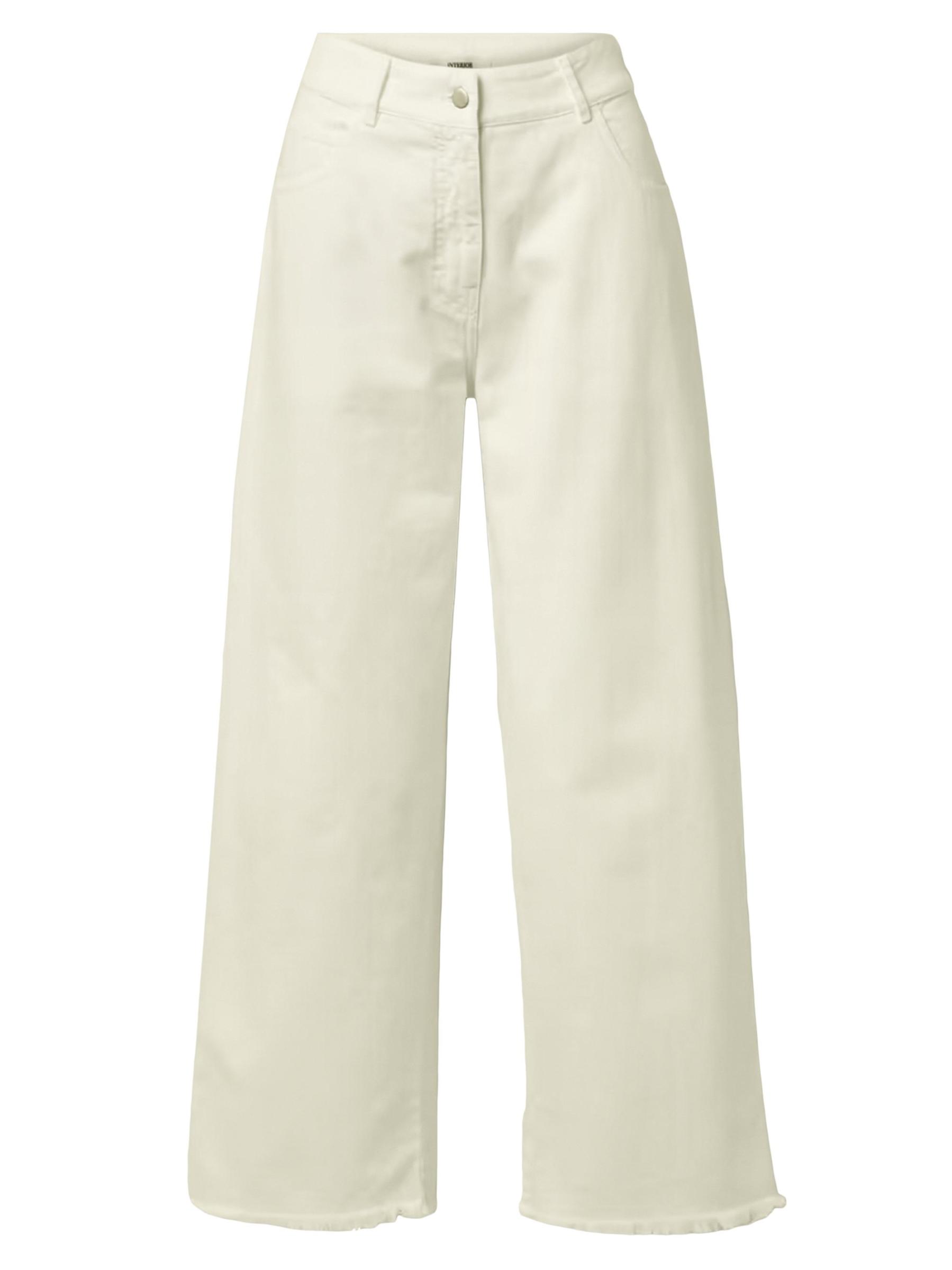بنطال جينز كلاريس من إنتيريور مصنوع من الدنيم الصلب ويتميز بقصة واسعة الساق. ويكتمل المظهر بحواف مهترئة وتصميم بأربعة جيوب.