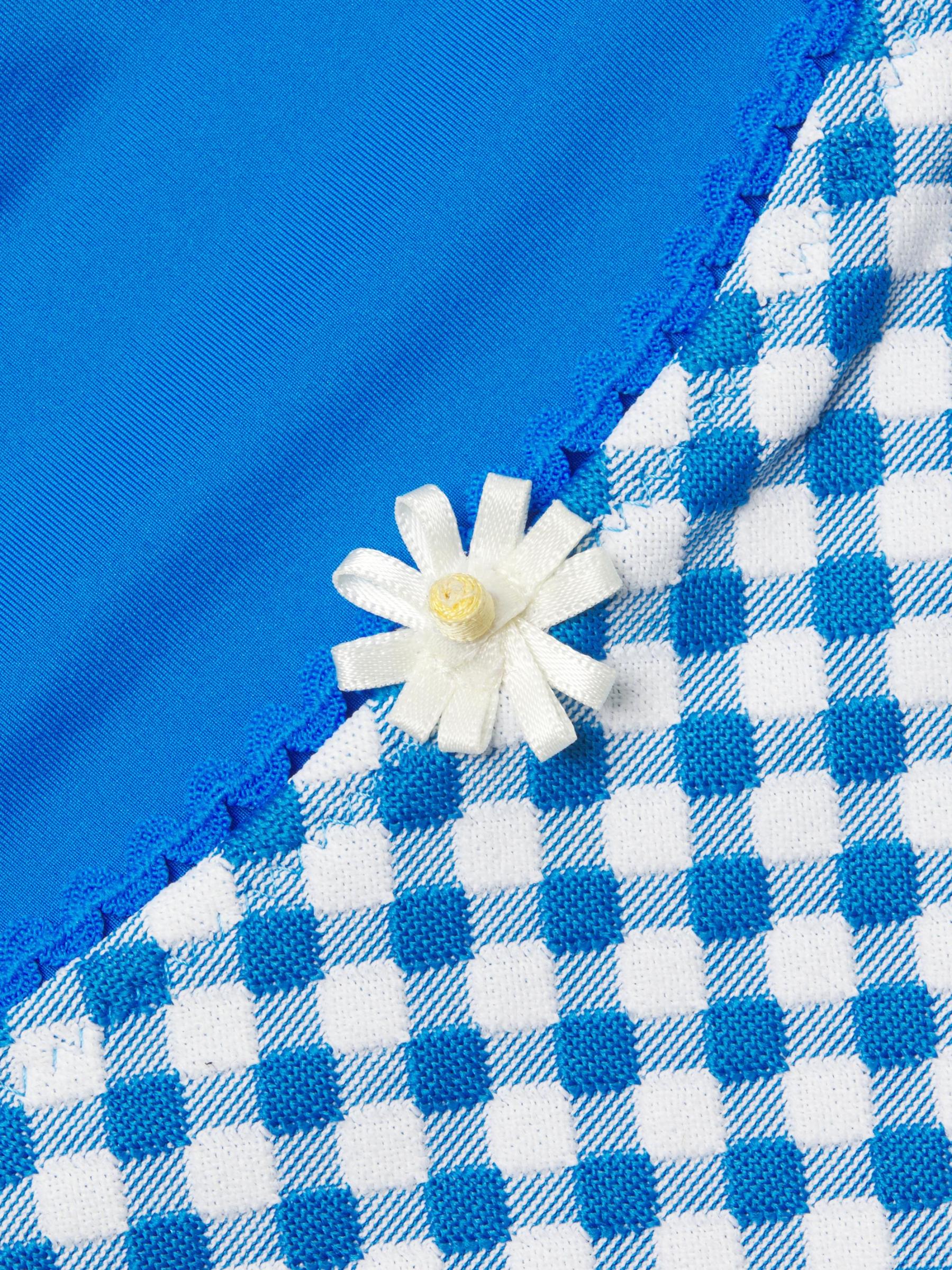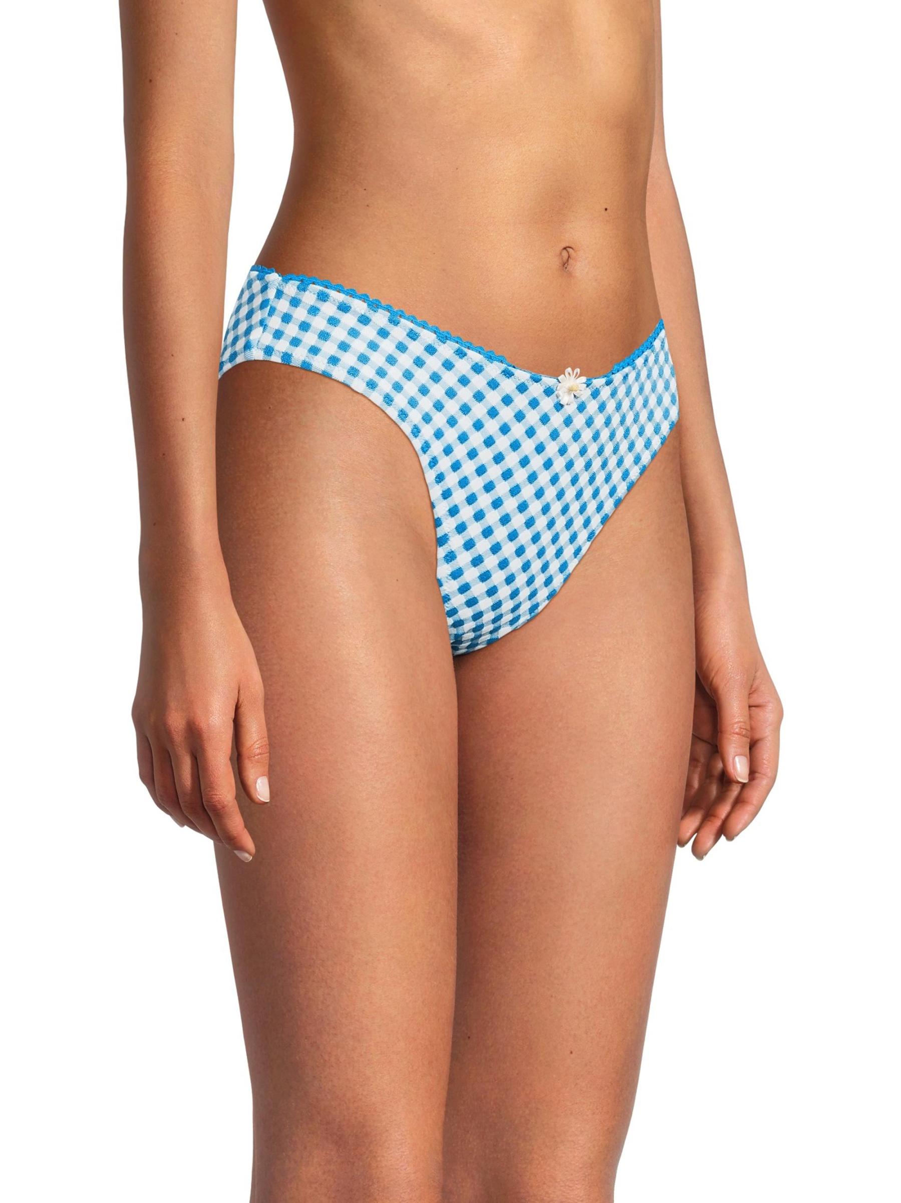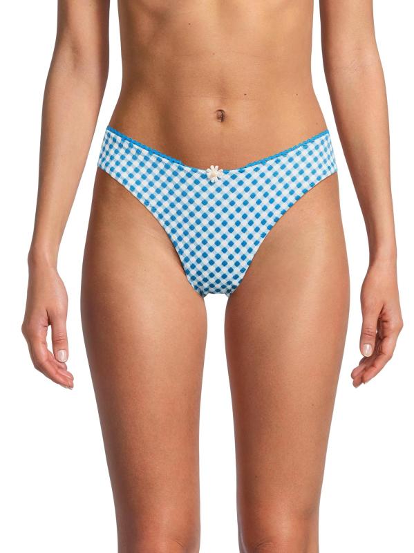 Striped بنمط قماش قطني وبارتفاع منخفض وحواف على شكل ريكراك عند الخصر.حزام خصر مطاطي سهل الارتداء تغطية خفيفة 91% نايلون/ 9% سباندكس غسيل يدوي مستوردة
