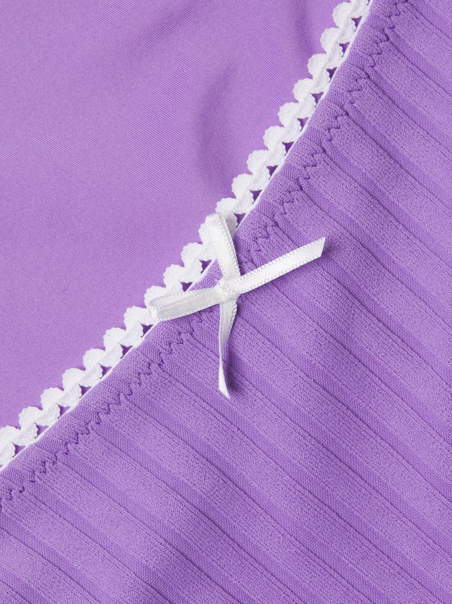 Striped بتصميم مضلع مستوحى من التسعينيات وتفاصيل على رف الريكراك وبارتفاع منخفض مع تغطية أنيقة.حزام خصر مطاطي سهل الارتداء تغطية خفيفة 91% نايلون/ 9% سباندكس غسيل يدوي مستوردة