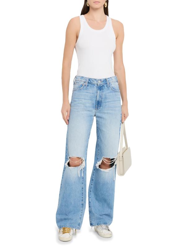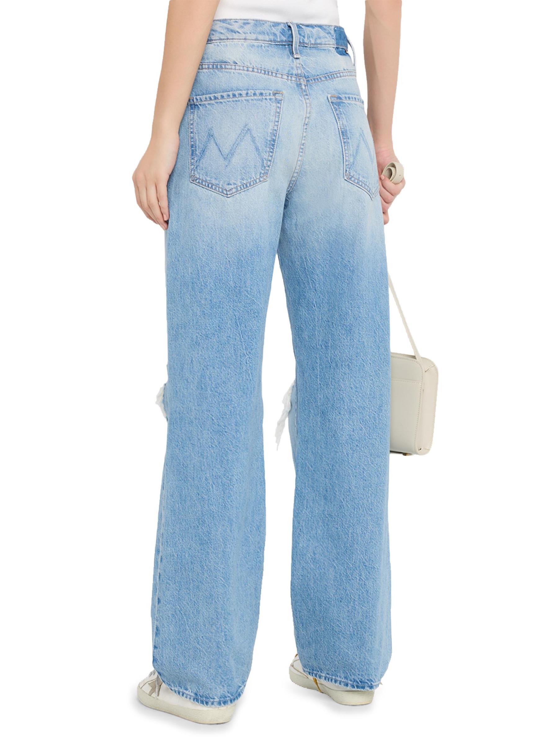 تم تصميم جينز Mother's The Dodger Sneak المصنوع من الدنيم غير القابل للتمدد من أجل الشعور بالراحة مع الركبتين الممزقتين.