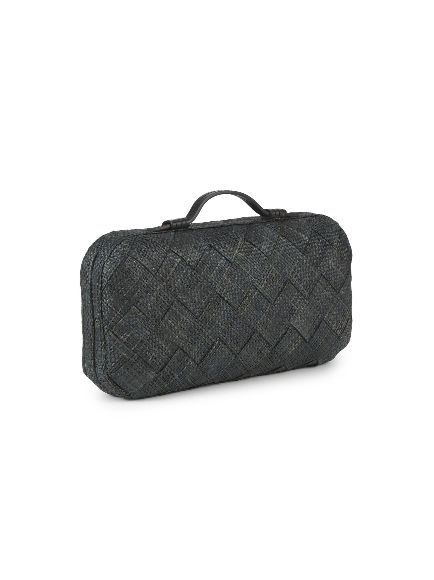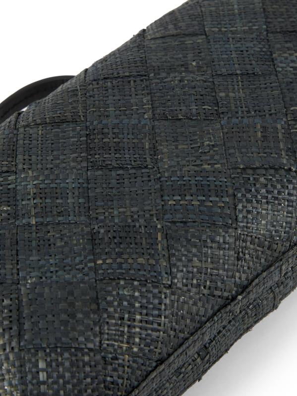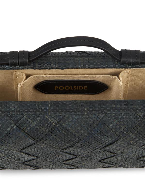 تتحول حقيبة اليد المنسوجة من إيست ويست من Poolside إلى حقيبة كروس بودي بحزام سلسلة باللون الذهبي.المقبض العلوي حزام يلتف حول الجسم بسلسلة قابلة للإزالة الجزء الداخلي: جيب واحد منزلق حقيبة الغبار سترو البطانة: قطن الزخرفة: جلد مستوردة
