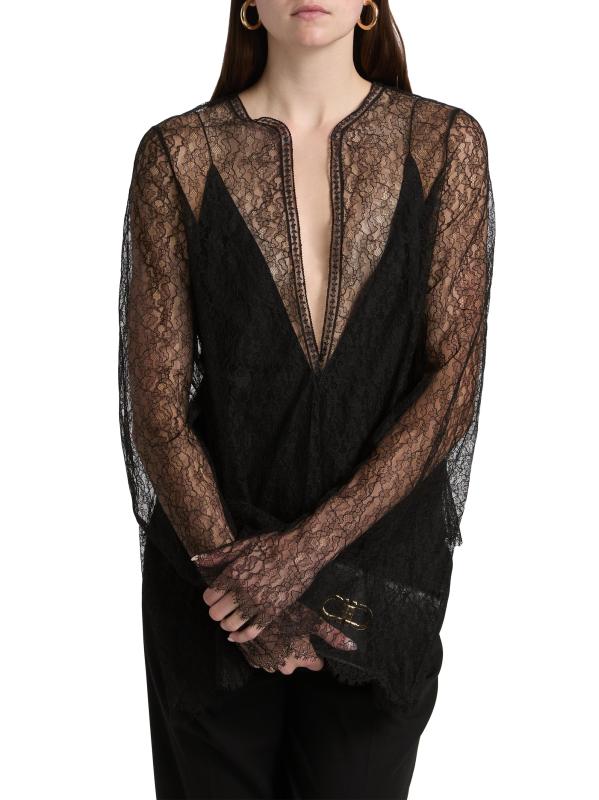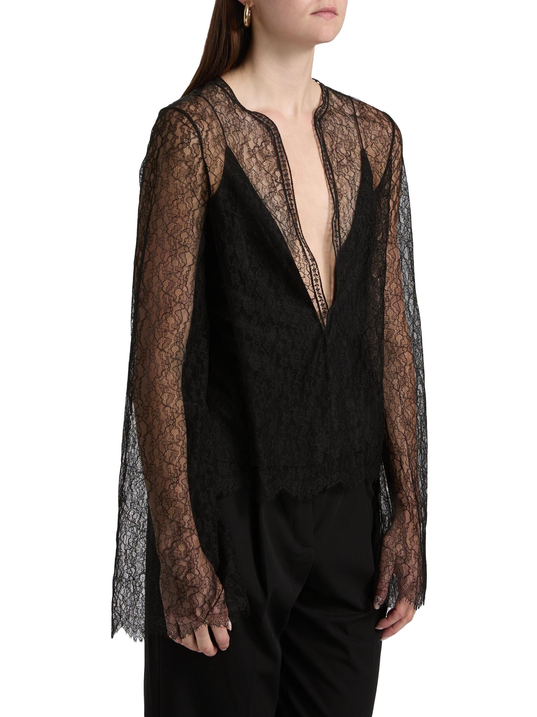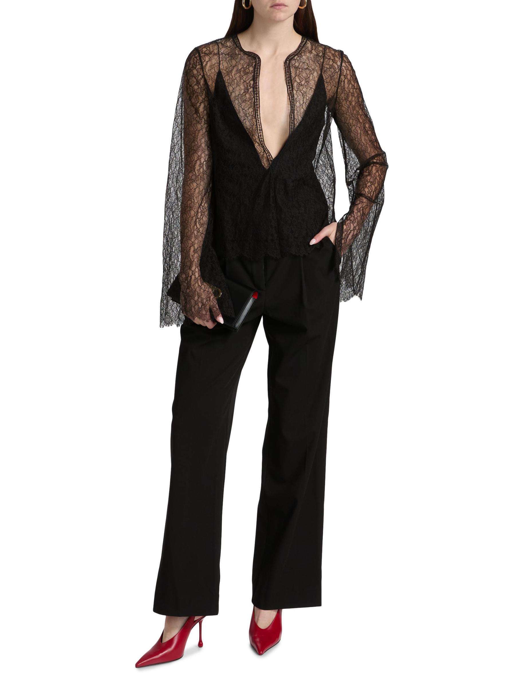تتميز بلوزة The Eloise من براندون ماكسويل بتقويرة مدببة وأكمام طويلة وتصميم من الدانتيل.