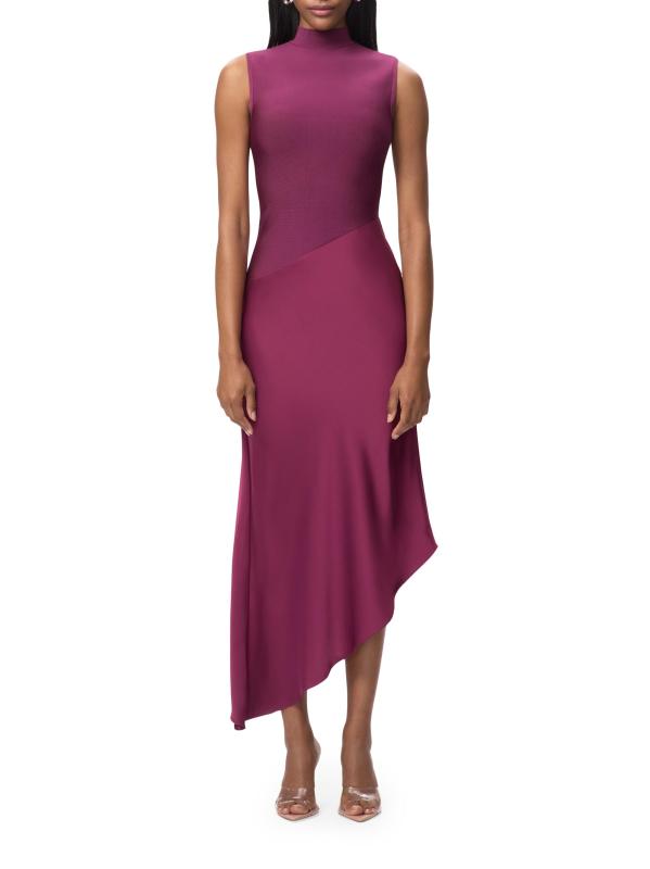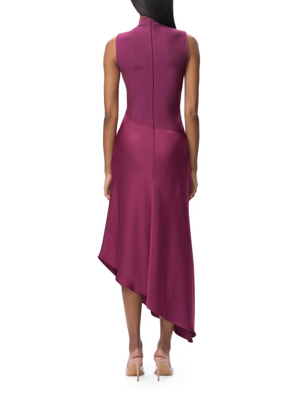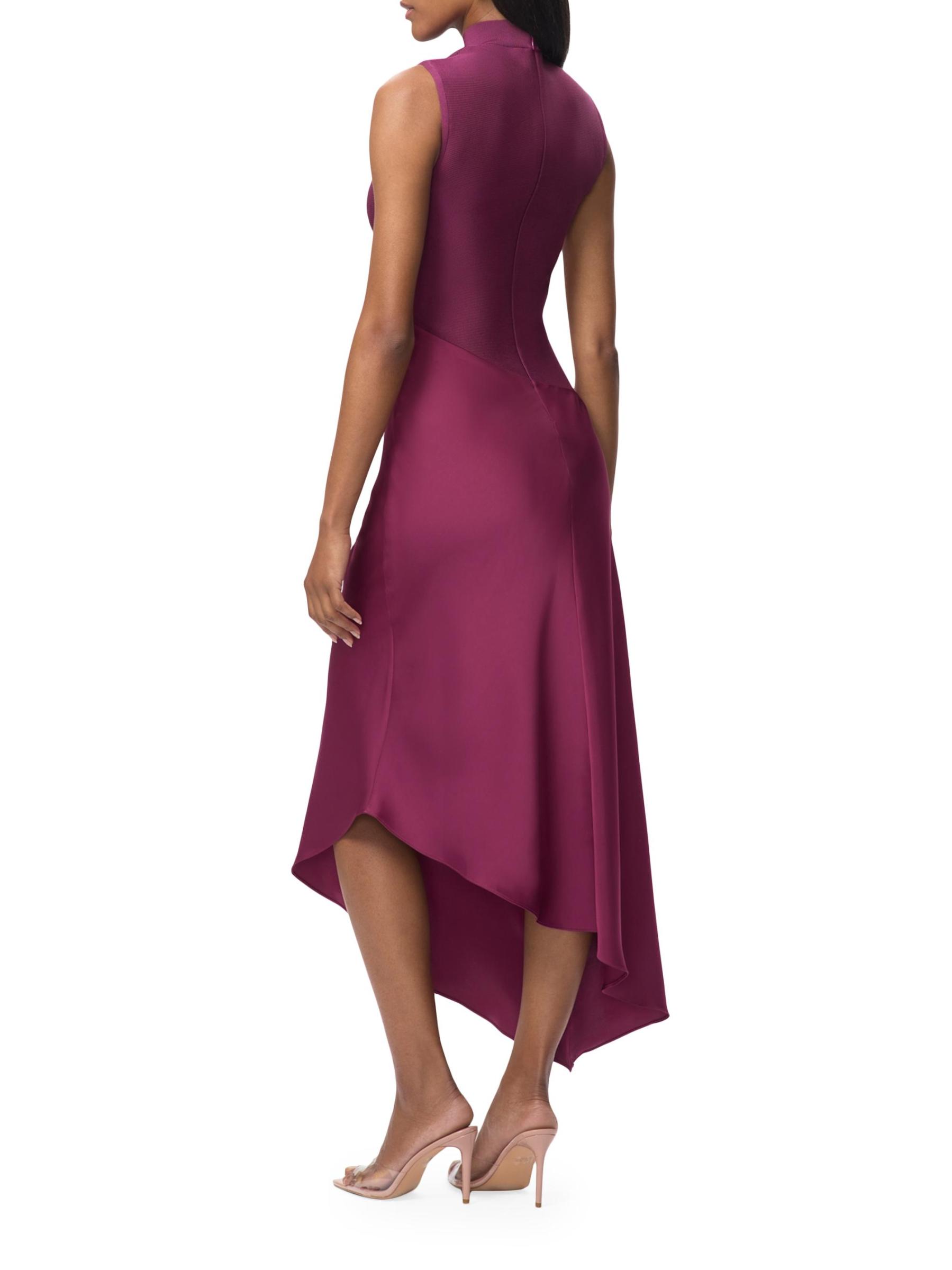 يتميّز فستان Esme midi من Hervé Léger بتصميم أنيق يجمع بين صدّار محبوك صغير وتنورة من الساتان السائل، مُزيّنة بحواف غير متماثلة لإضفاء لمسة جمالية على الصدّار.