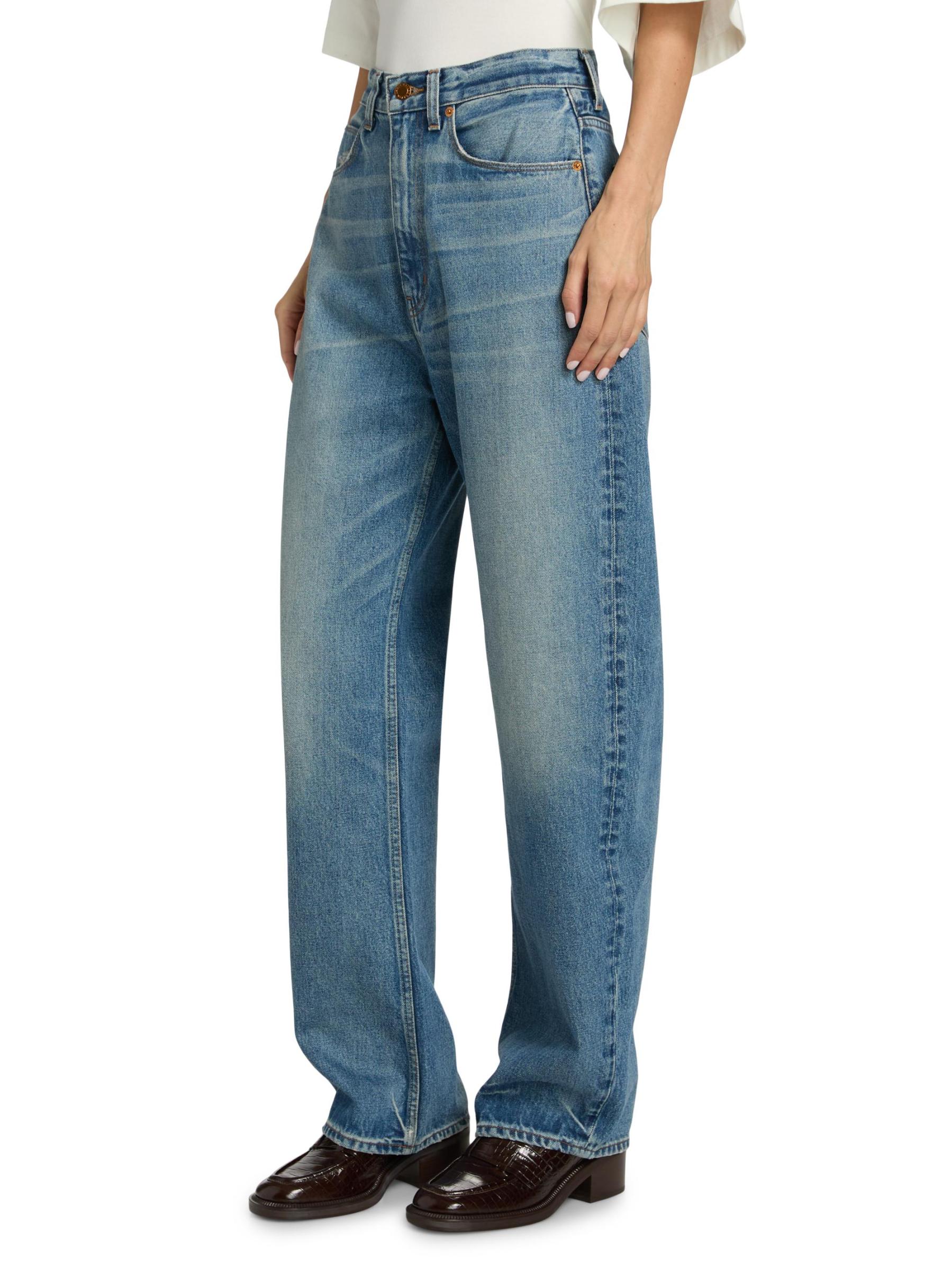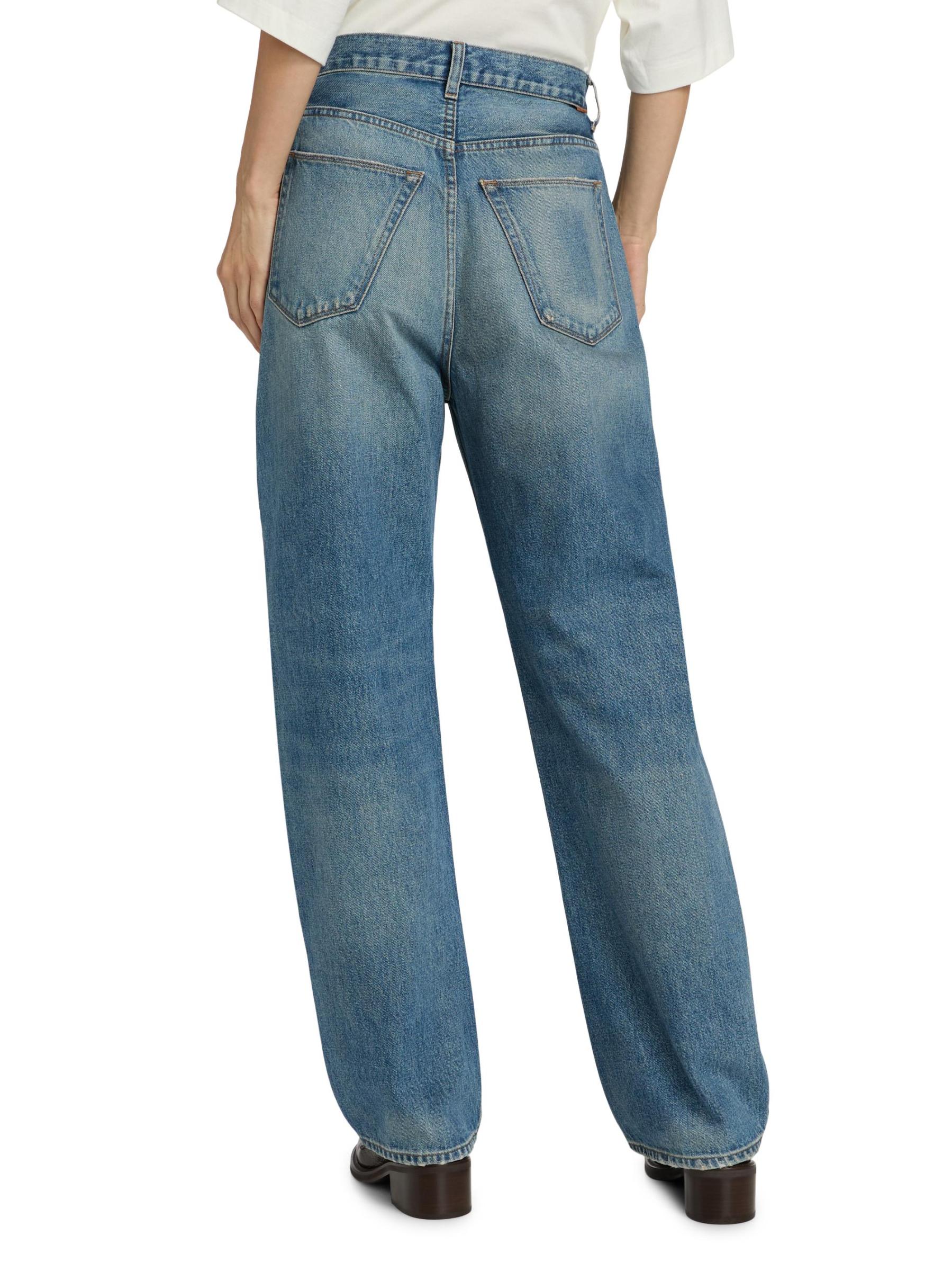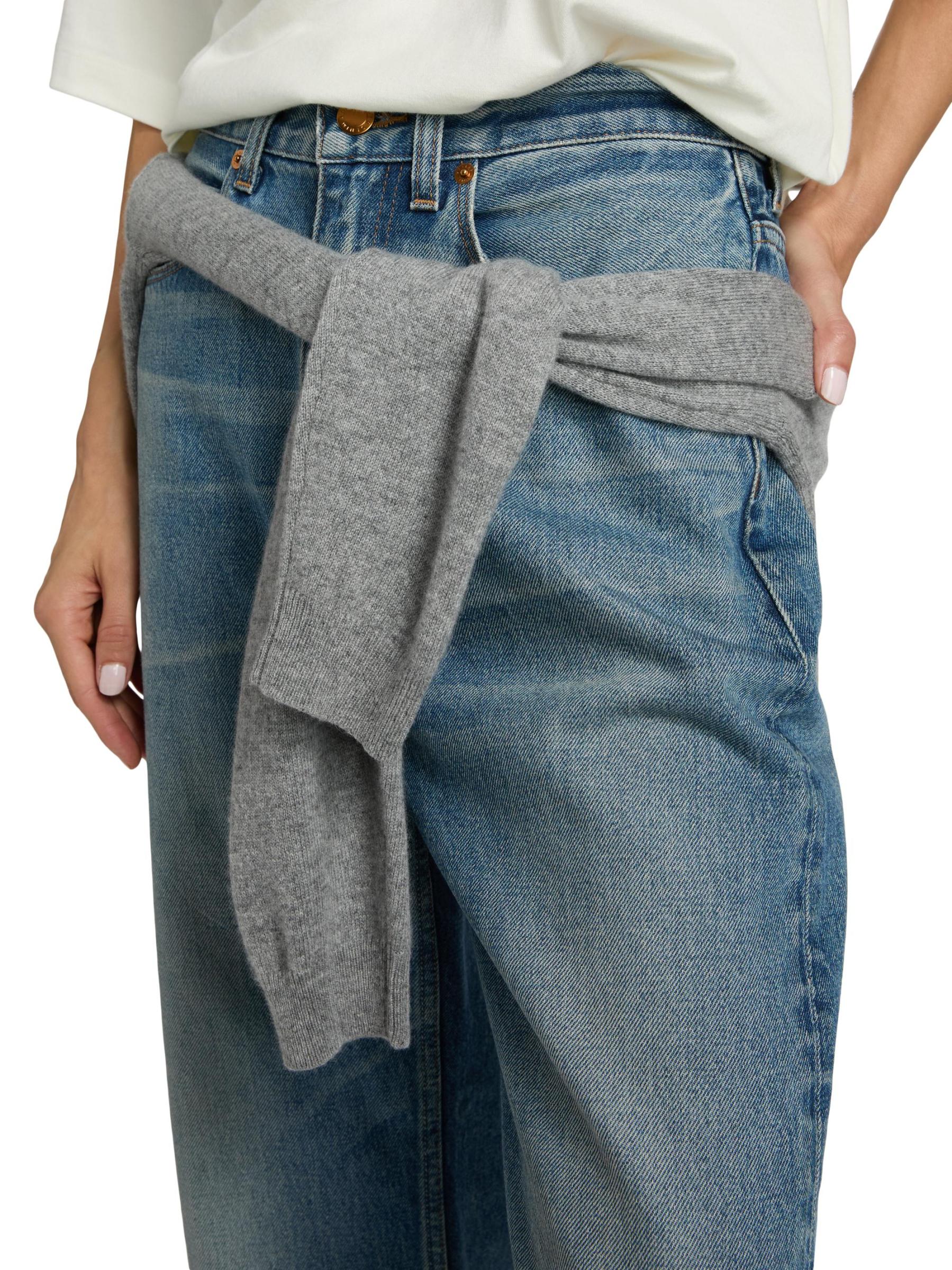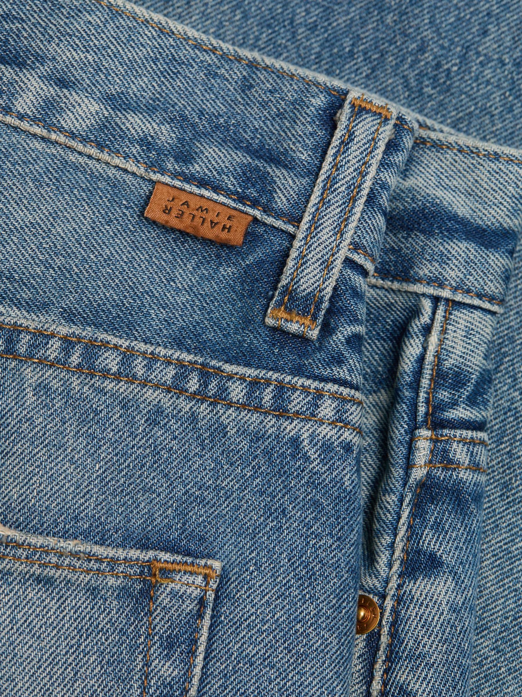 صُمم بنطال جينز ذا فان ذو الخمسة جيوب من جيمي هالر بخصر مرتفع وقصة مدببة، مع لمسة نهائية مستوحاة من الطراز القديم. صُنع هذا الزوج في لوس أنجلوس، ويتميز بتلاشي خفيف مع الخفق.