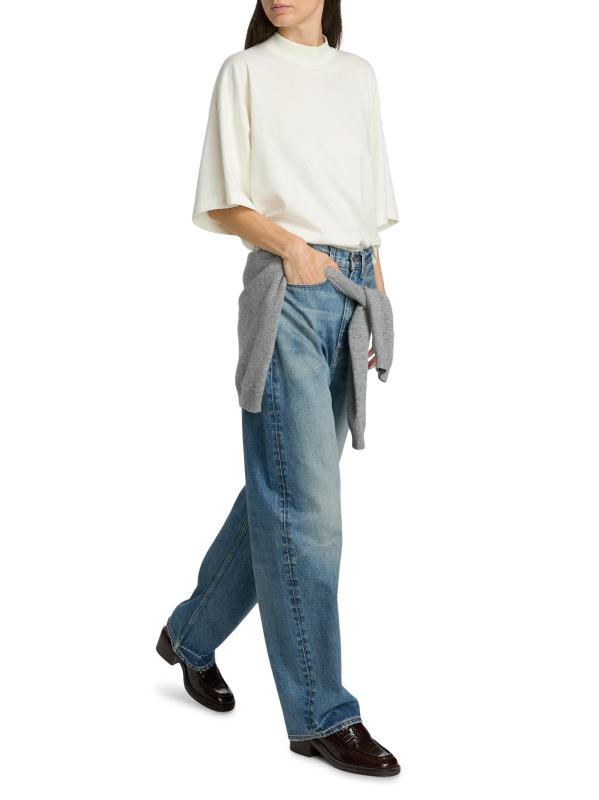 صُمم بنطال جينز ذا فان ذو الخمسة جيوب من جيمي هالر بخصر مرتفع وقصة مدببة، مع لمسة نهائية مستوحاة من الطراز القديم. صُنع هذا الزوج في لوس أنجلوس، ويتميز بتلاشي خفيف مع الخفق.طراز بخمسة جيوب سحّاب، زر للإغلاق قطن بنسبة 100% البطانة: 100% قطن يُغسل في الغسالة صُنع في الولايات المتحدة الأمريكية