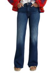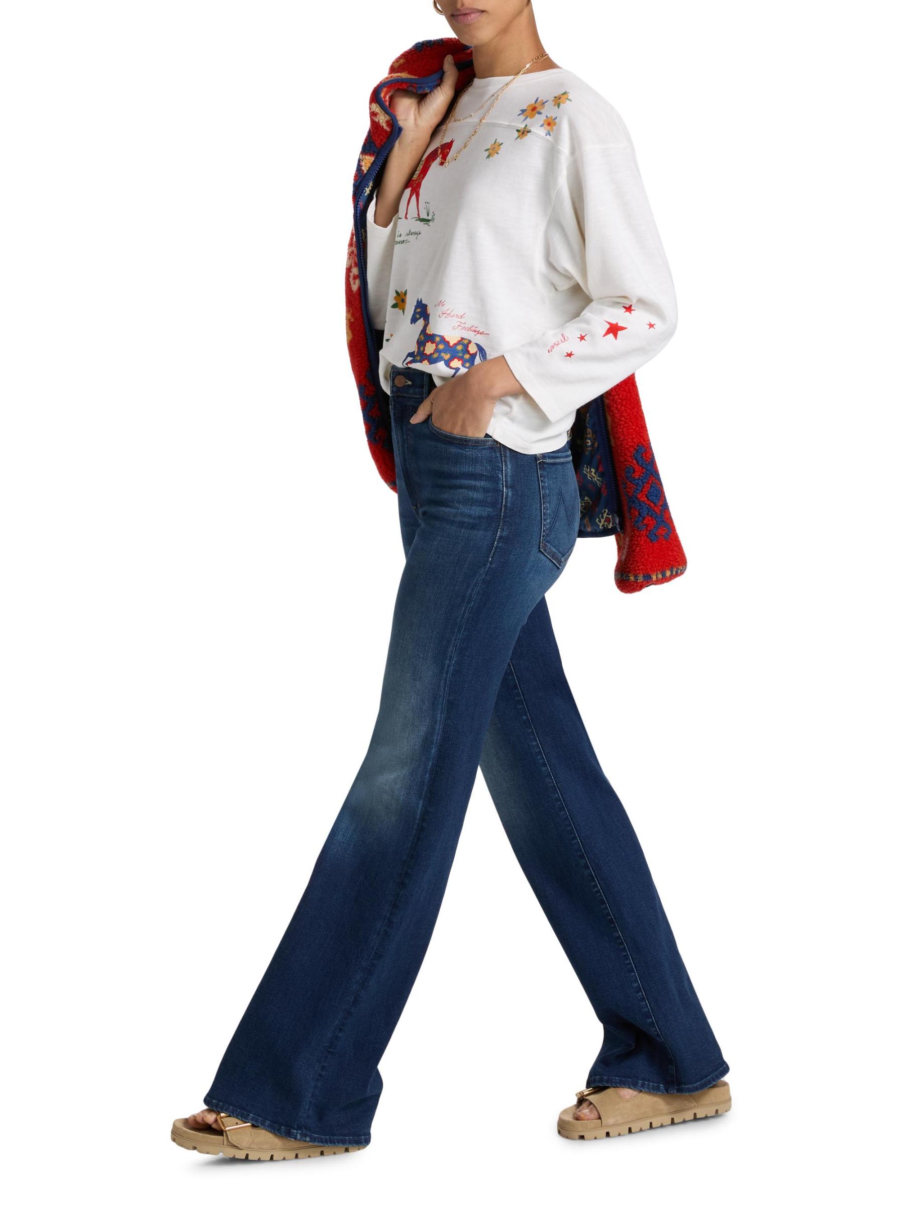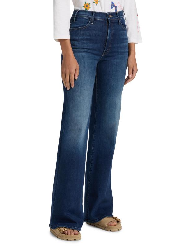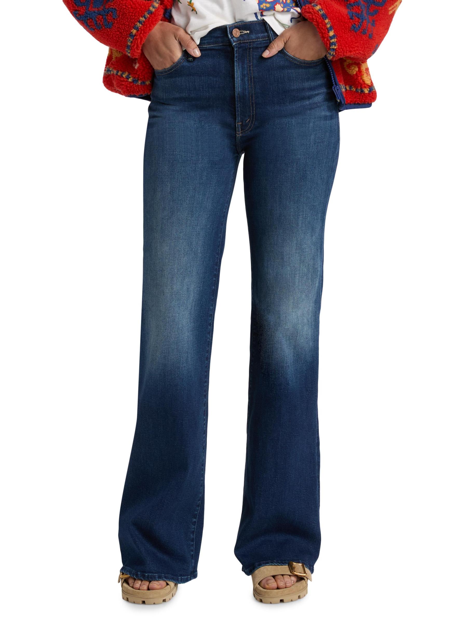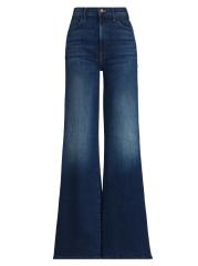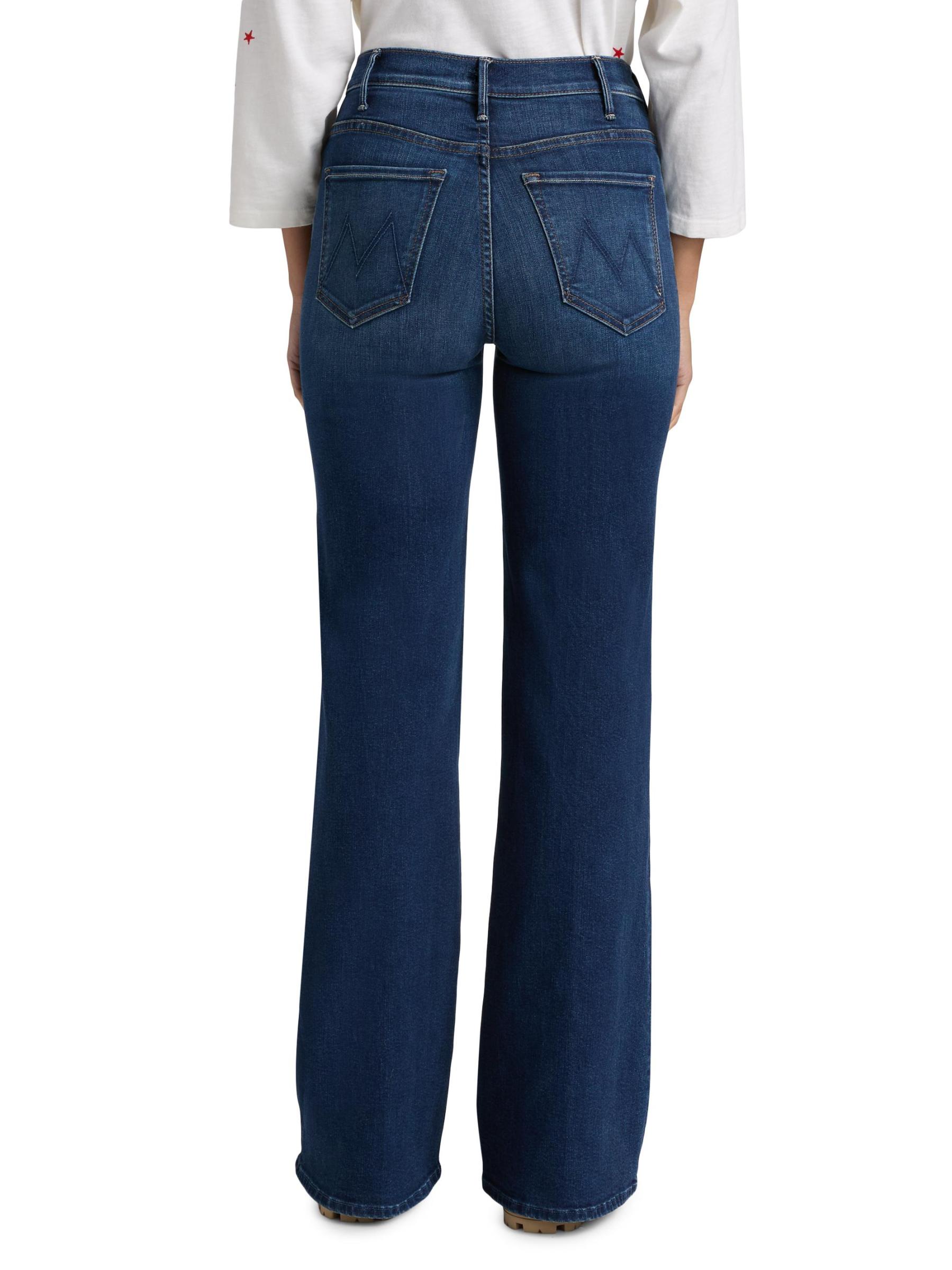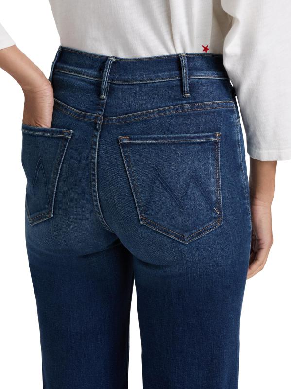 بنطال جينز Hustler Roller Sneak من Mother مصنوع من مزيج القطن باللون الداكن ومصمم بتصميم مرتفع بحافة متوهجة.