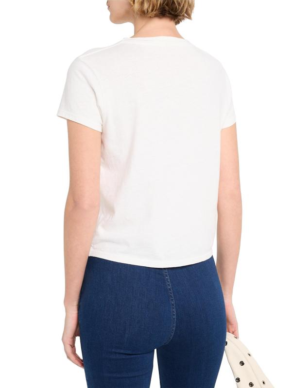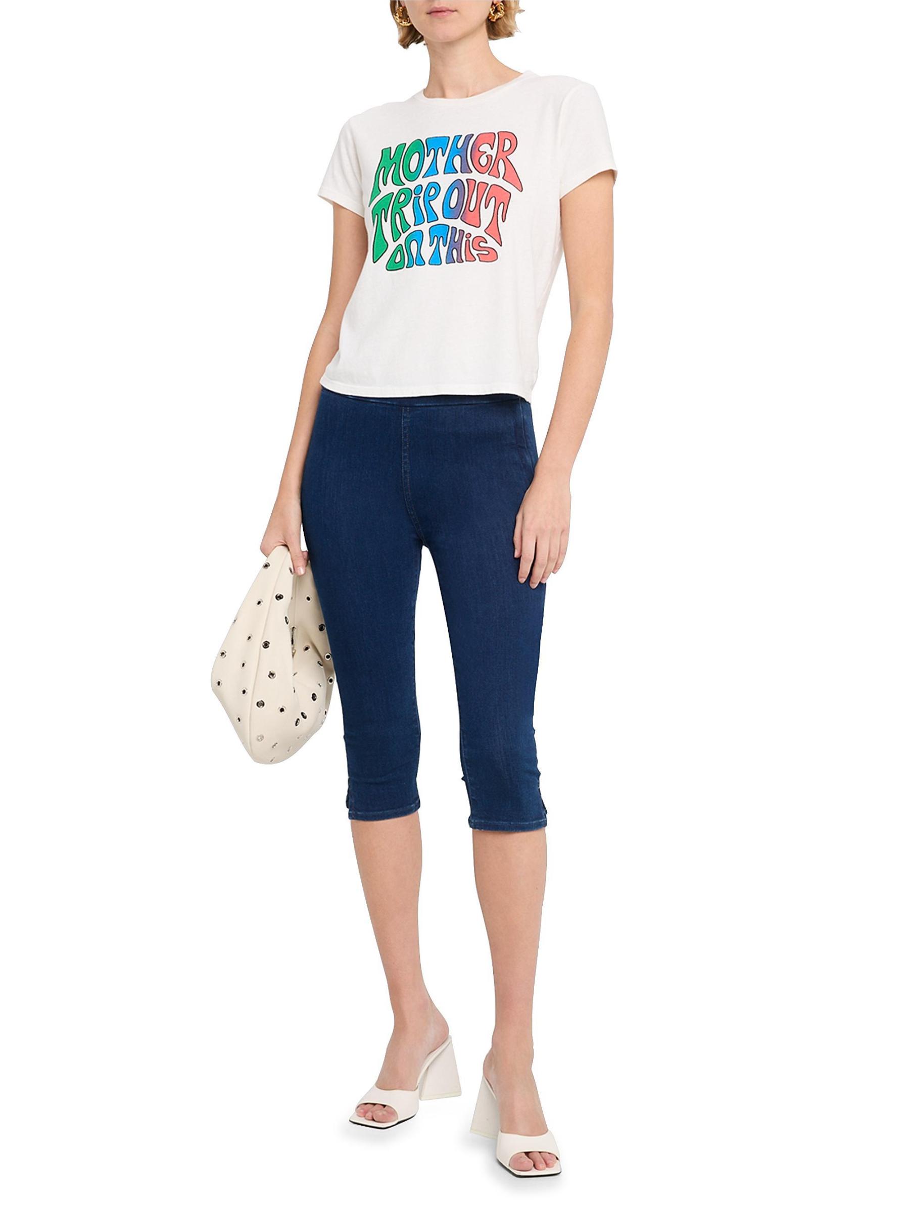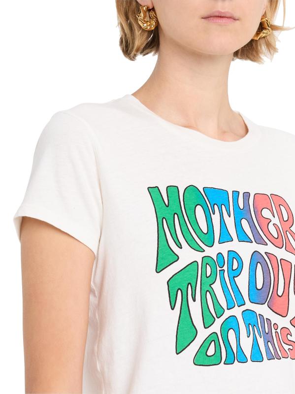 يتميز هذا التيشيرت القطني الكلاسيكي ذو الرقبة المستديرة من Mother برسومات مستوحاة من الطراز القديم وقصة قصيرة قليلاً.