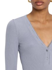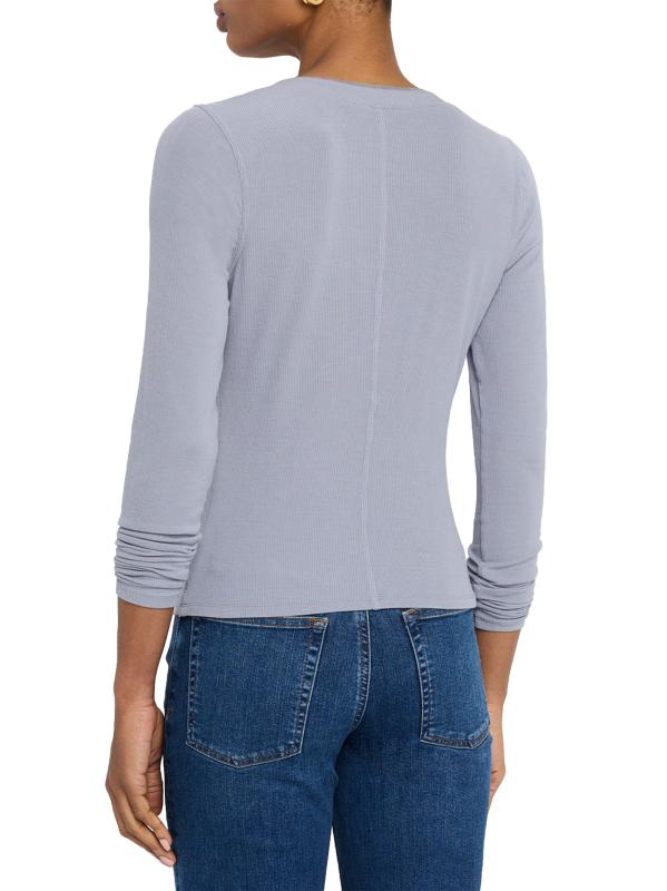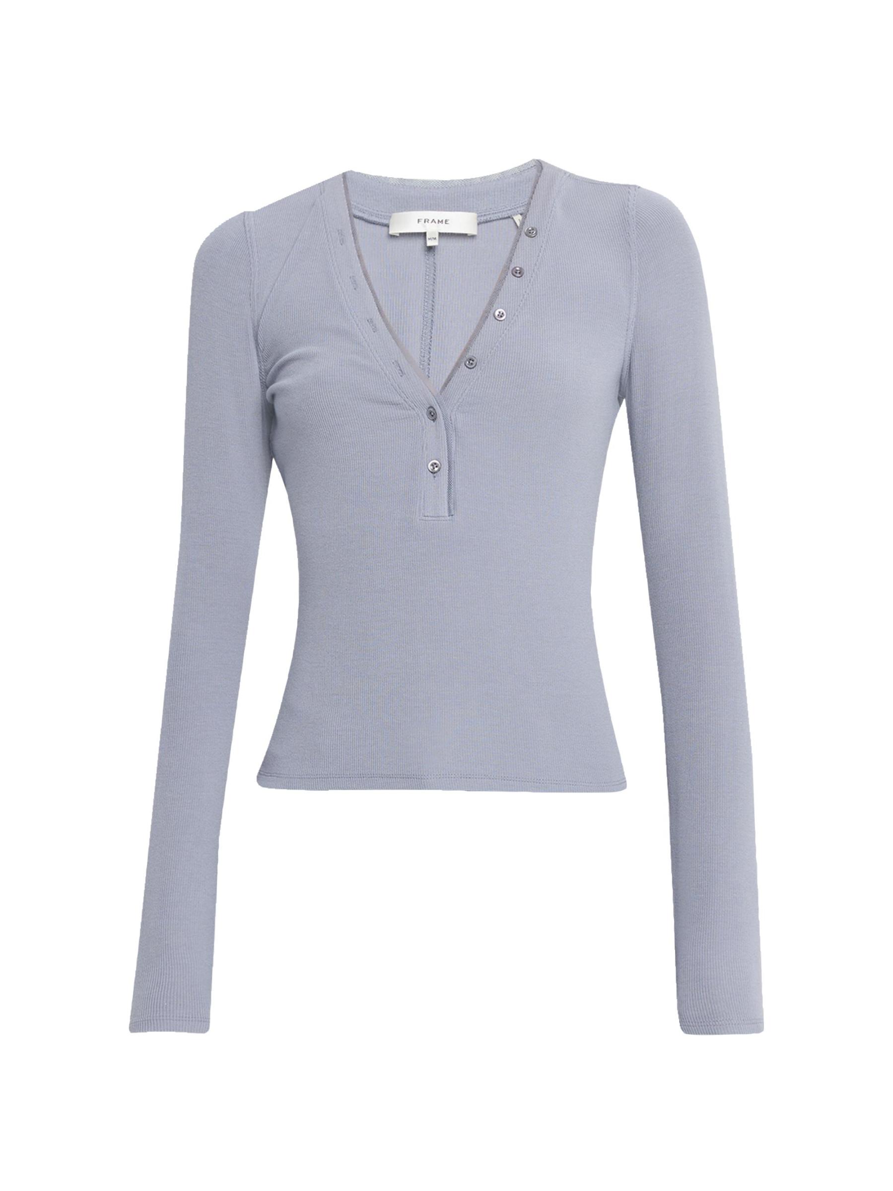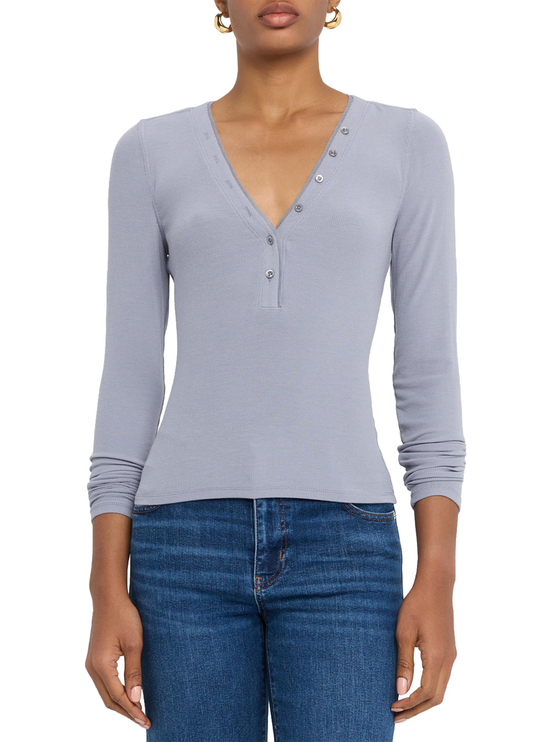 تم تصميم ساعة Henley المضلعة من Frame ذات الحافة الشبكية من نسيج مرن وناعم وتم قصها بمقاس نحيف.رقبة على شكل حرف V أكمام طويلة فتحة زر أمامية مودال/سباندكس تنظيف جاف مستوردة