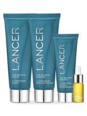 تتوفر طريقة لانسر ثلاثية الخطوات الأكثر مبيعًا من لانسر للبشرة العادية والمختلطة الآن في حقيبة سفر أنيقة معتمدة من TSA مع كمية تزيد عن 30 يومًا من التلميع والتنظيف والتغذية وحجم تمهيدي من زيت أوميغا المرطب. يُعد مزيج Lancer Method:® Normal — الأفضل للبشرة التي نادرًا ما تعاني من البثور أو الحساسية، ويعمل من خلال المساعدة في التأثير على دورة التجدد الطبيعية للبشرة. صُنع في الولايات المتحدة الأمريكية.