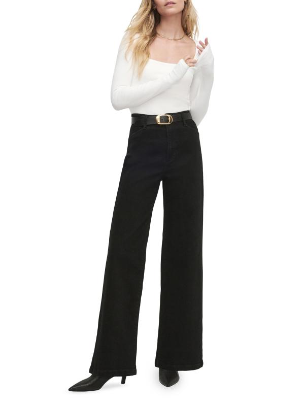 تم تصميم جينز Mischa من Favourite Daughter المصنوع من القطن المرن في شكل مرتفع واسع الساق مع جيوب جانبية مائلة.
