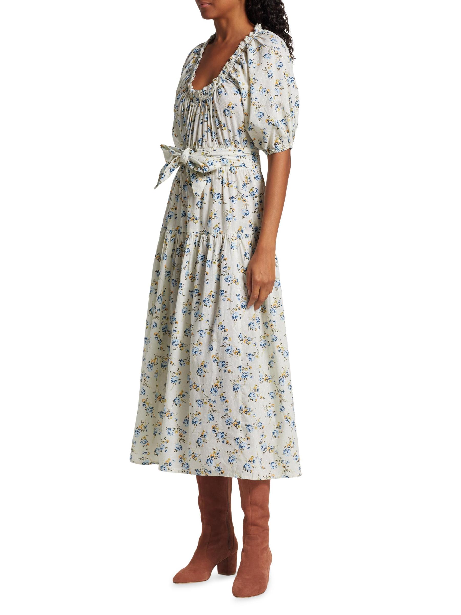 يتميز فستان Moonstone المتوسط من The Great بتصميم على شكل حرف A مصنوع من القطن الزهري. يتم تعريف الأسلوب من خلال رقبة دائرية مكشكشة وأكمام منفوخة بطول الكوع وحزام مطابق للربط الذاتي.سكوبنك أكمام منفوخة بطول الكوع حزام ربط ذاتي تسحب قطن بنسبة 100% يُغسل في الغسالة صُنع في الولايات المتحدة الأمريكية