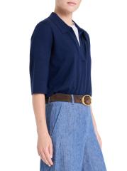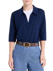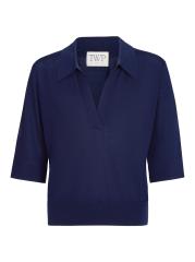 سترة بولو المريحة من TWP مصنوعة من مزيج صوف ميرينو والحرير ومصممة بياقة جوني وأكمام بطول ثلاثة أرباع.