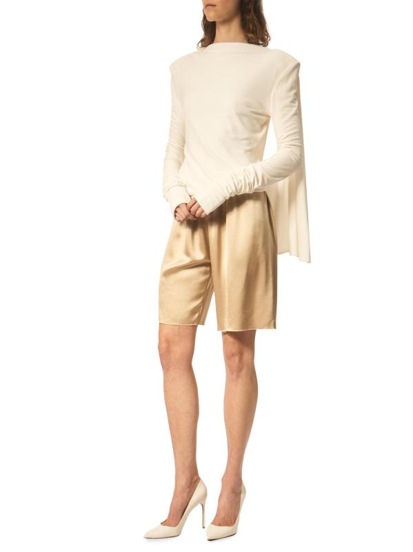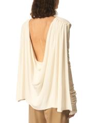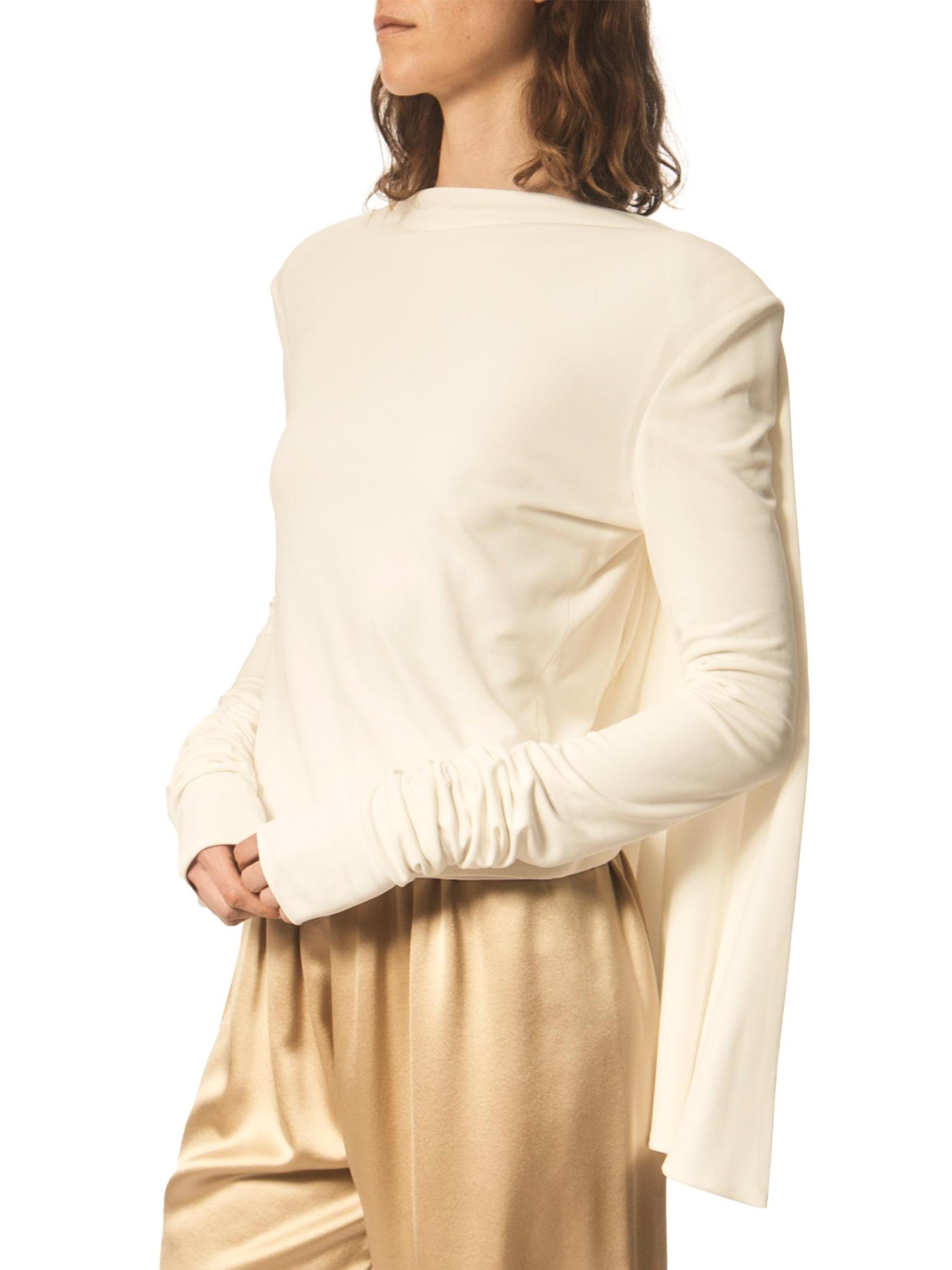 تتميز بلوزة Porset المحبوكة من Interior بأكمام طويلة وتفاصيل عباءة خلفية منسدلة بشكل جميل.