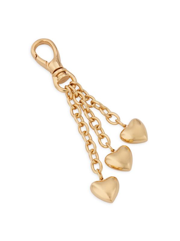 صُنع سحر حقيبة Puffy Heart من Roxanne Assoulin من المعدن اللامع باللون الذهبي مع ثلاثة قلوب متصلة بمشبك لتزيين حزام الحقيبة أو الأجهزة.