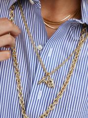 تسلط قلادة Puffy Initial من Roxanne Assoulin الضوء على سلسلتي كابل باللون الذهبي ترسيان حلية الحروف المنتفخة.نحاس قفل تبديل مستوردة
